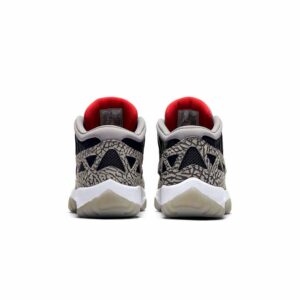 The Air Jordan 11 Low IE “Black Cement” is the alternate low-top edition of Michael Jordan’s eleventh signature shoe that takes inspiration liberally from one of the greatest colorways ever— “Black Cement.” This special Summer 2020 release of the Jordan 11 Low IE, which stands for “International Exclusive,” is an ode to the Jordan 3 “Black Cement” design. Jordan briefly wore this silhouette in a “Bred” makeup during the ’96 NBA Playoffs. As for this shoe, black leather forms the base of the upper, and is contrasted by a toe-to-heel elephant print overlay. A Cement Grey liner and leather tongue with red embroidered Jumpman branding contrasts the black cotton laces. The look is drawn to a close with a white midsole and semi-translucent outsole, which borrows the familiar forefoot and heel traction pod and carbon fiber midfoot plate.