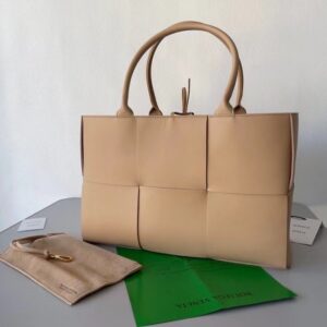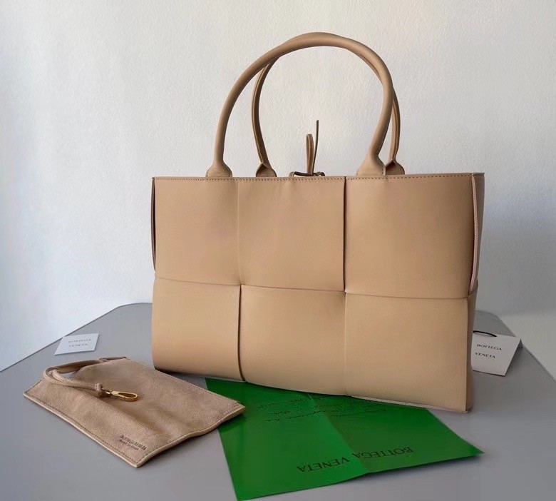 Bottega Veneta Arco Medium Tote In Beige Intrecciato Lambskin