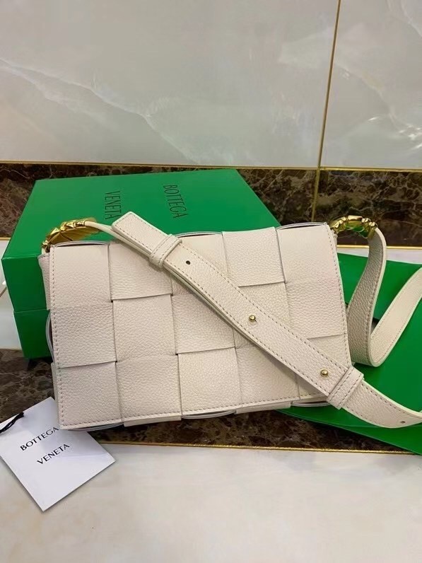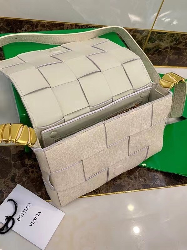 Bottega Veneta Cassette Bag In White Grained Leather