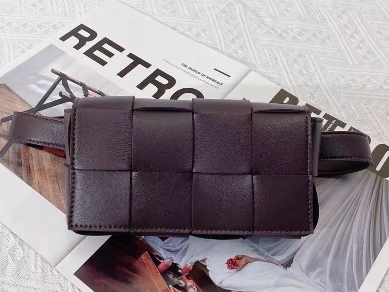 Bottega Veneta Cassette Belt Bag In Grape Intrecciato Leather