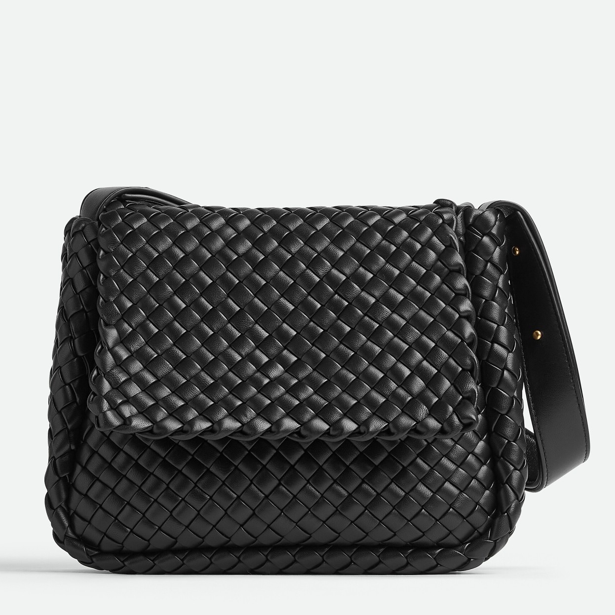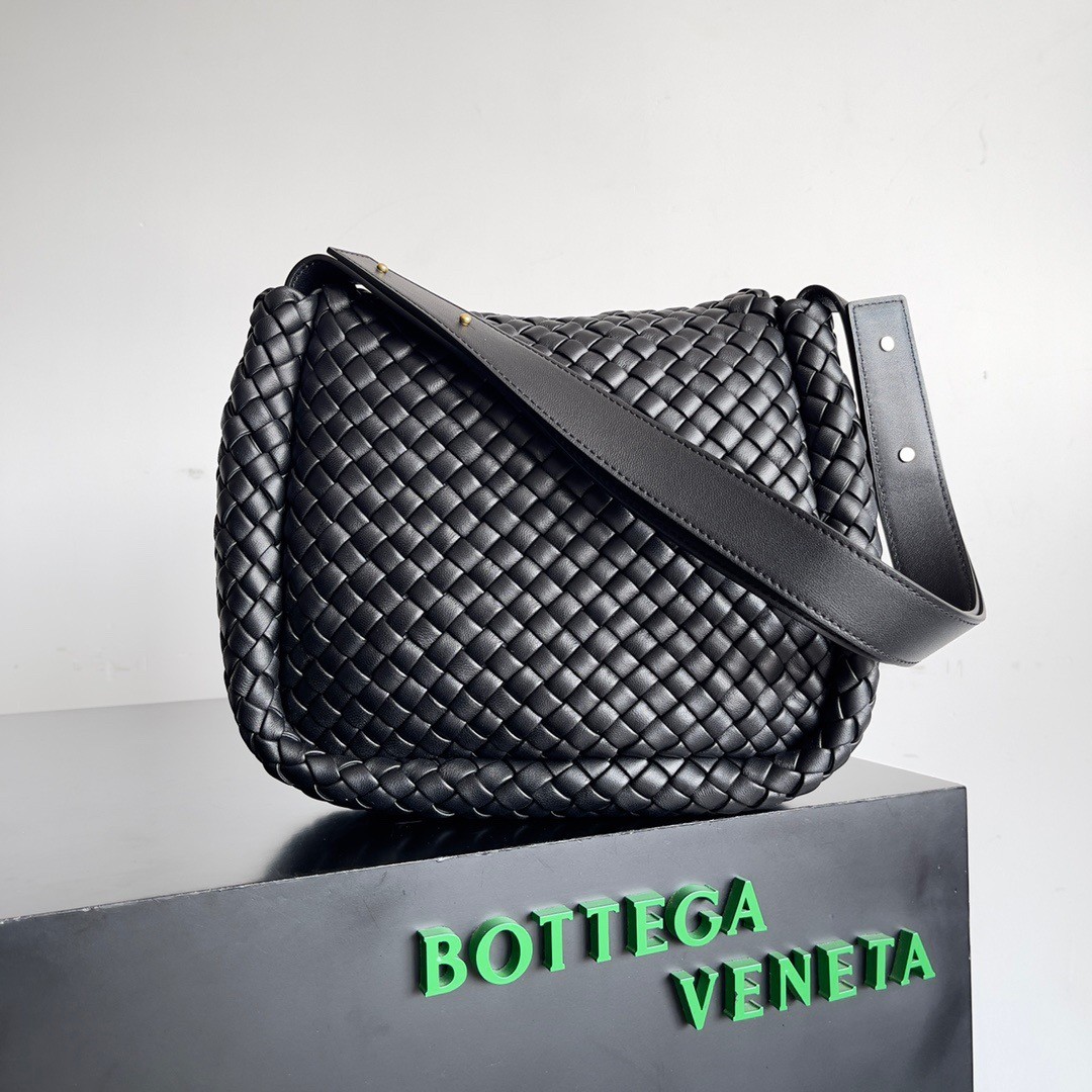 Bottega Veneta Cobble Small Bag in Black Intrecciato Leather