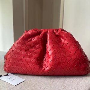 Bottega Veneta Large Pouch Clutch In Red Intrecciato Lambskin