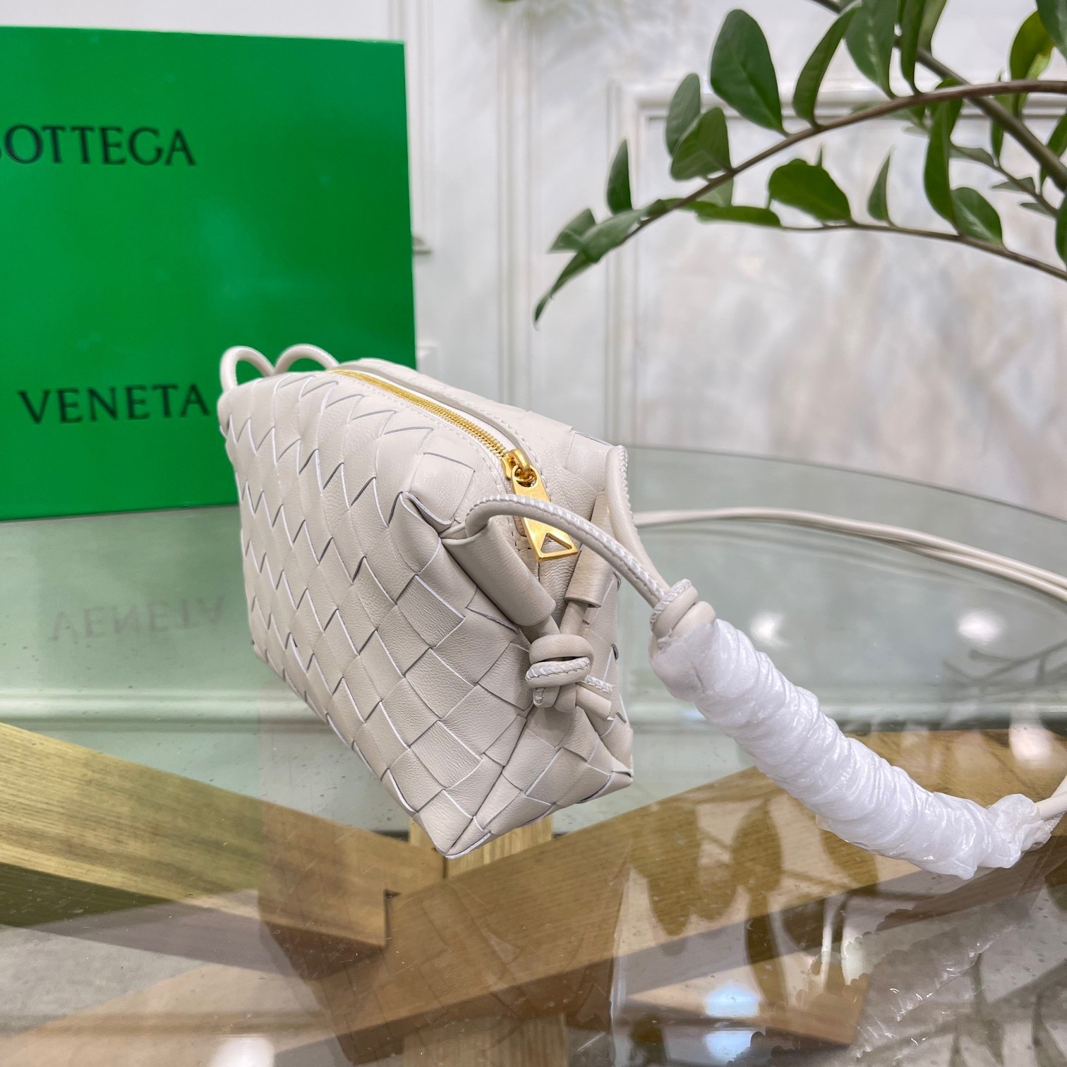 Bottega Veneta Loop Mini Bag In White Intrecciato Lambskin