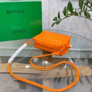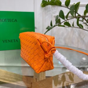 Bottega Veneta Loop Small Bag In Orange Intrecciato Lambskin