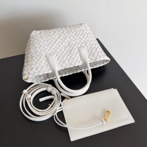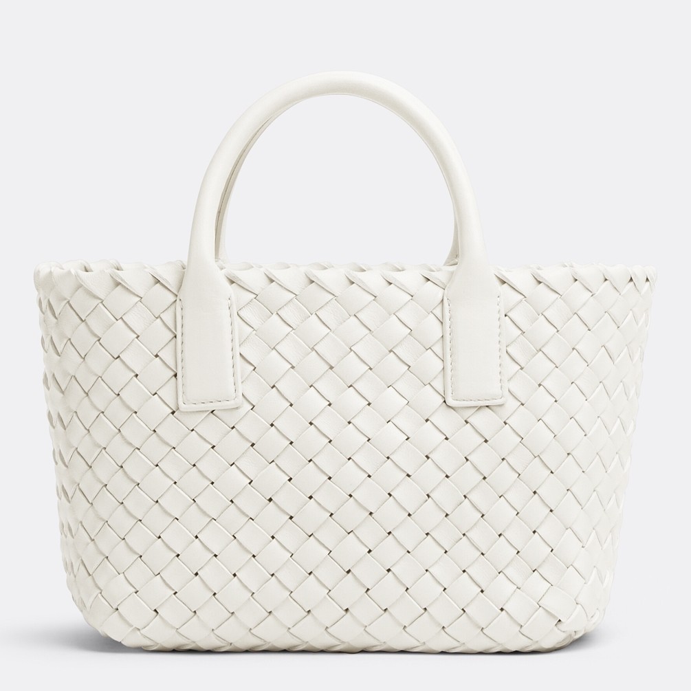 Bottega Veneta Mini Cabat Bag In White Intrecciato Lambskin