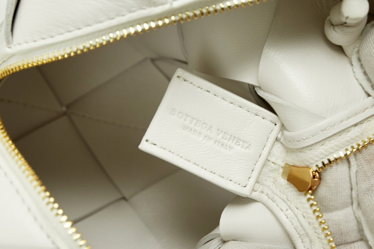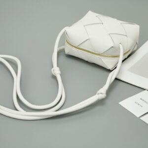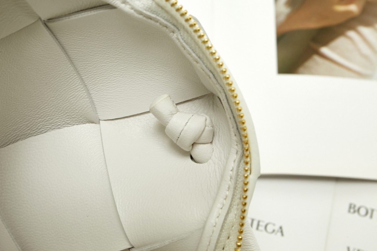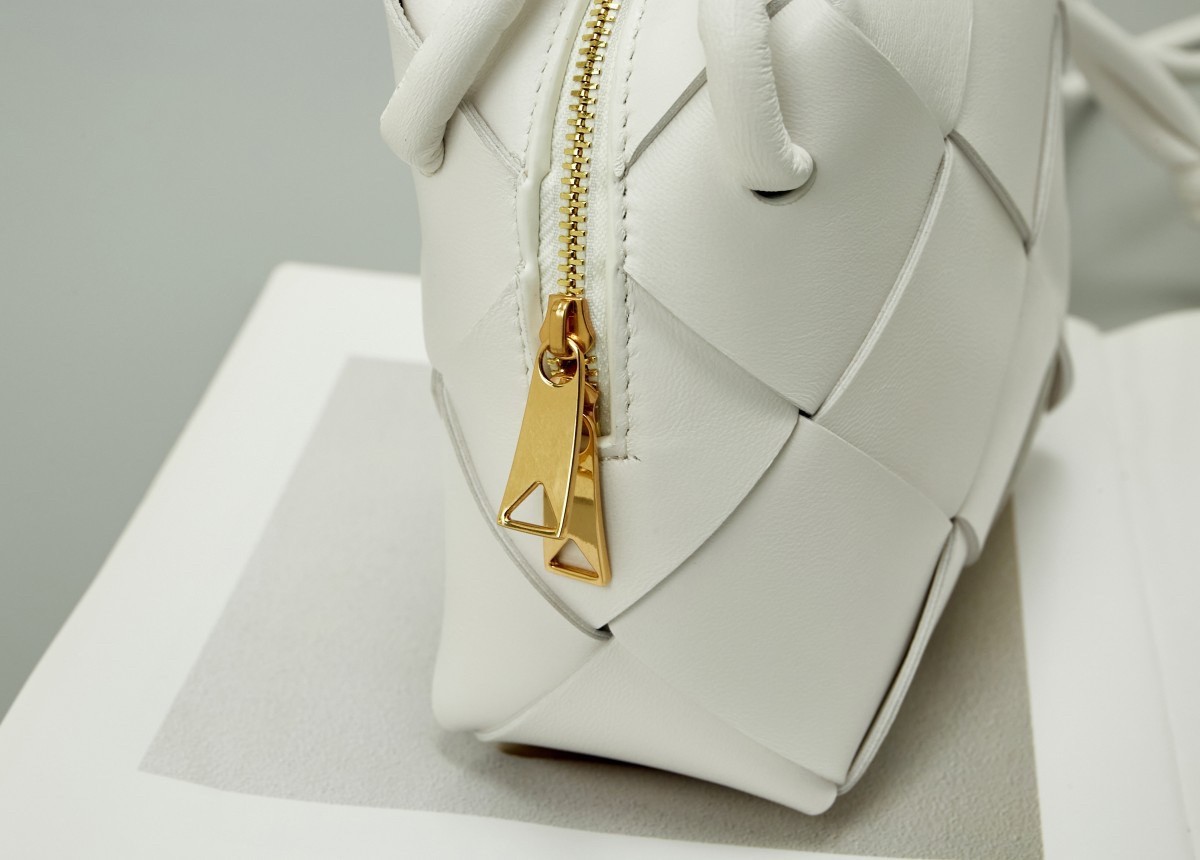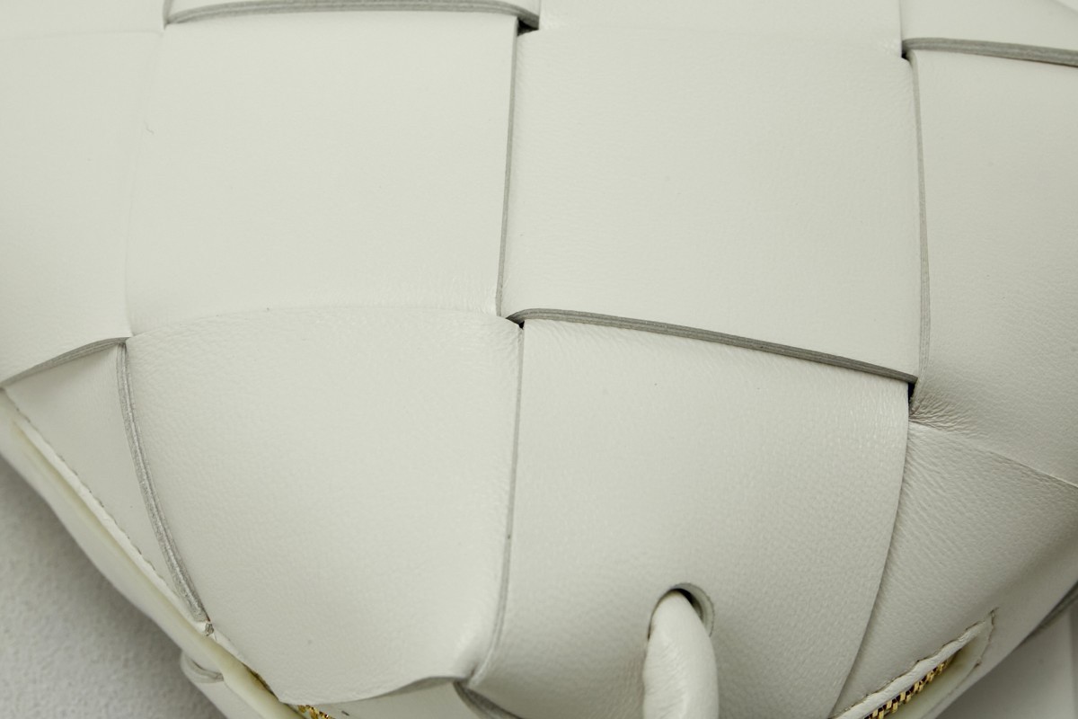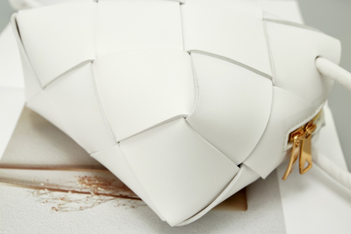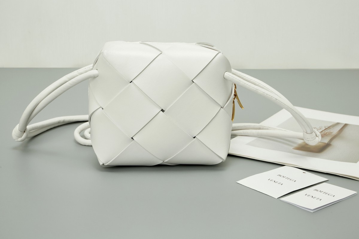 Bottega Veneta Mini Cassette Camera Bag In White Lambskin
