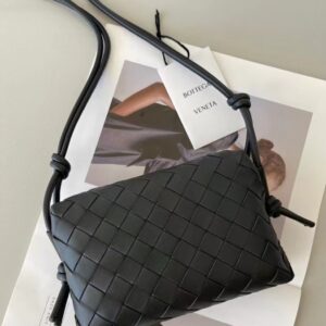 Bottega Veneta Mini Loop Bag In Black Intrecciato Lambskin