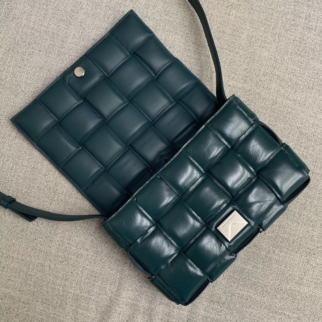 Bottega Veneta Padded Cassette Bag In Green Calfskin