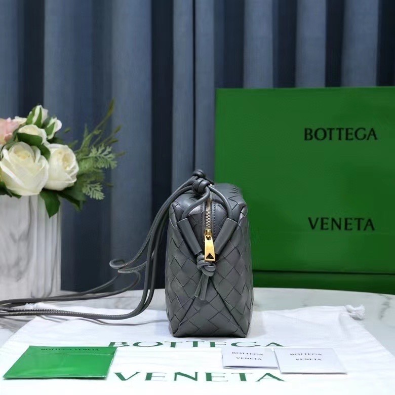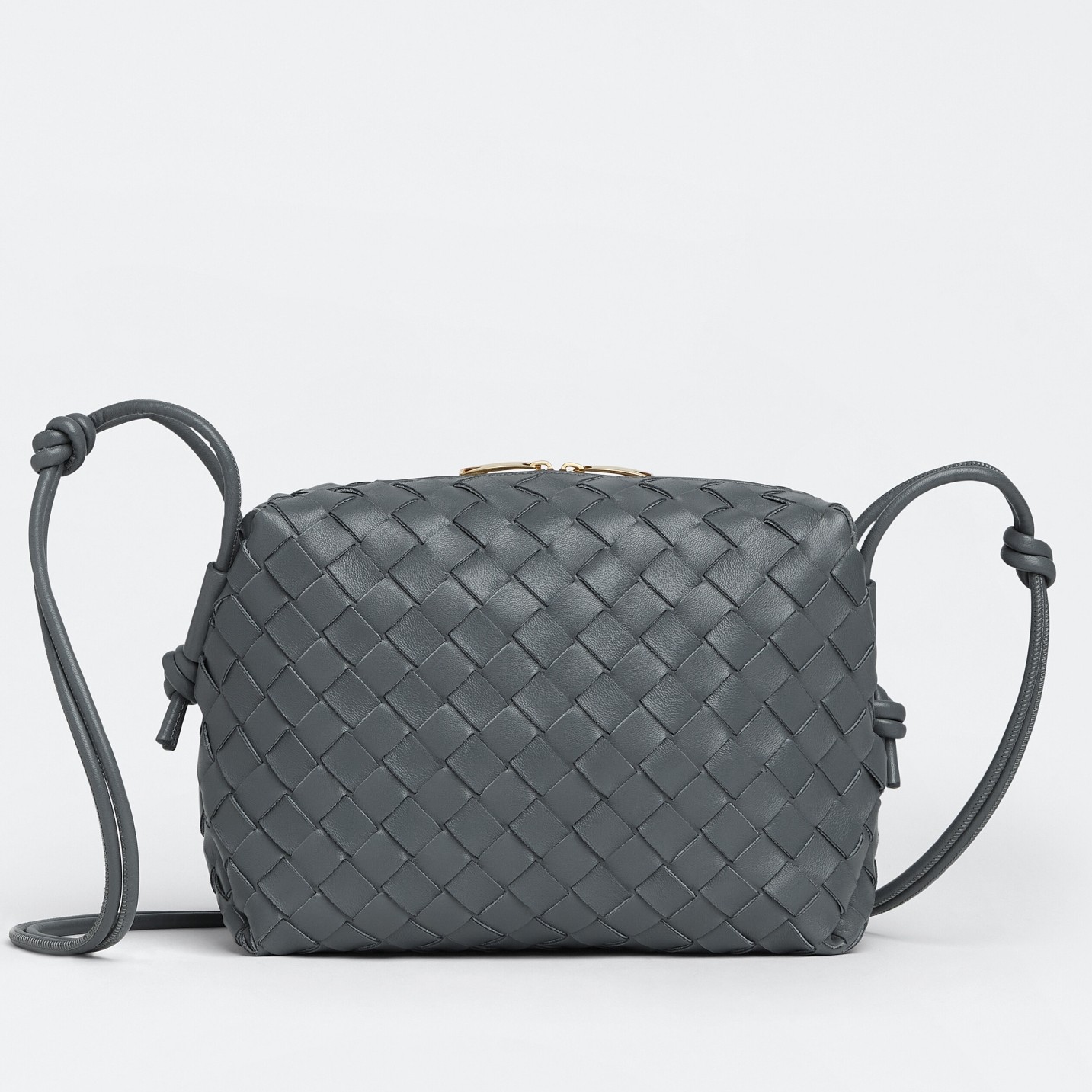 Bottega Veneta Small Loop Bag In Thunder Intrecciato Lambskin