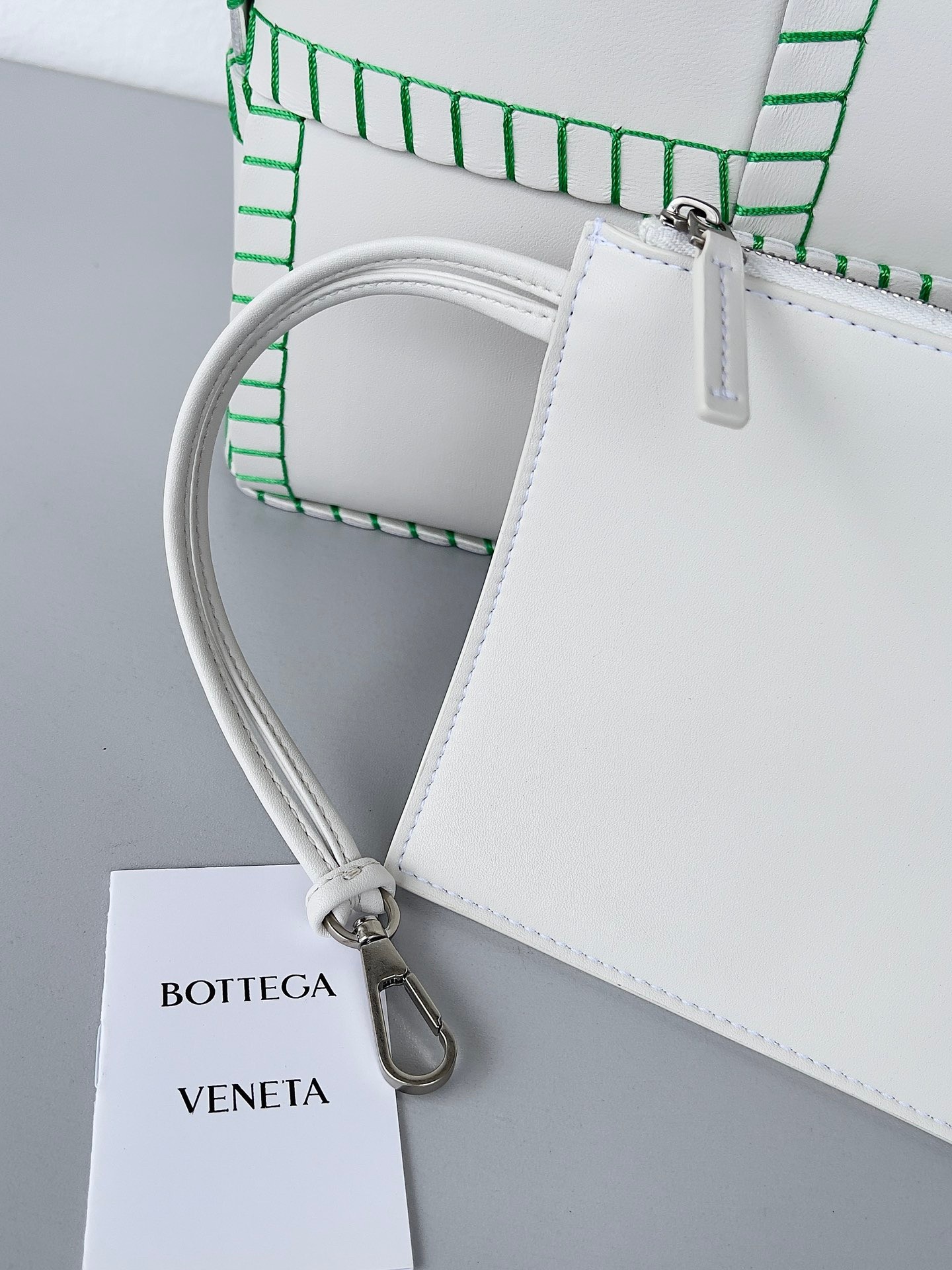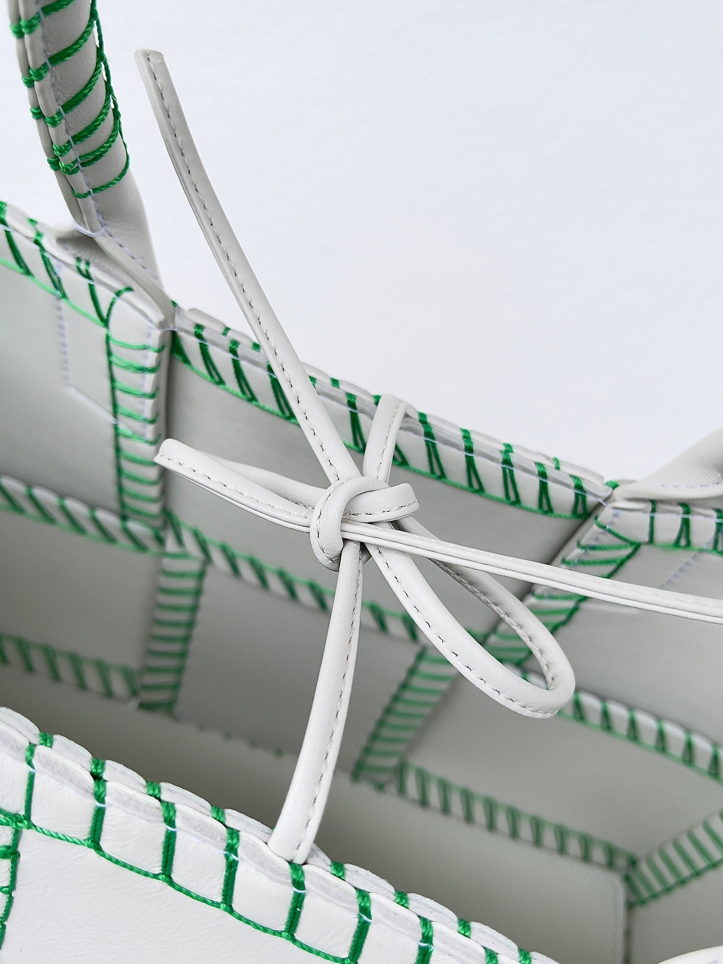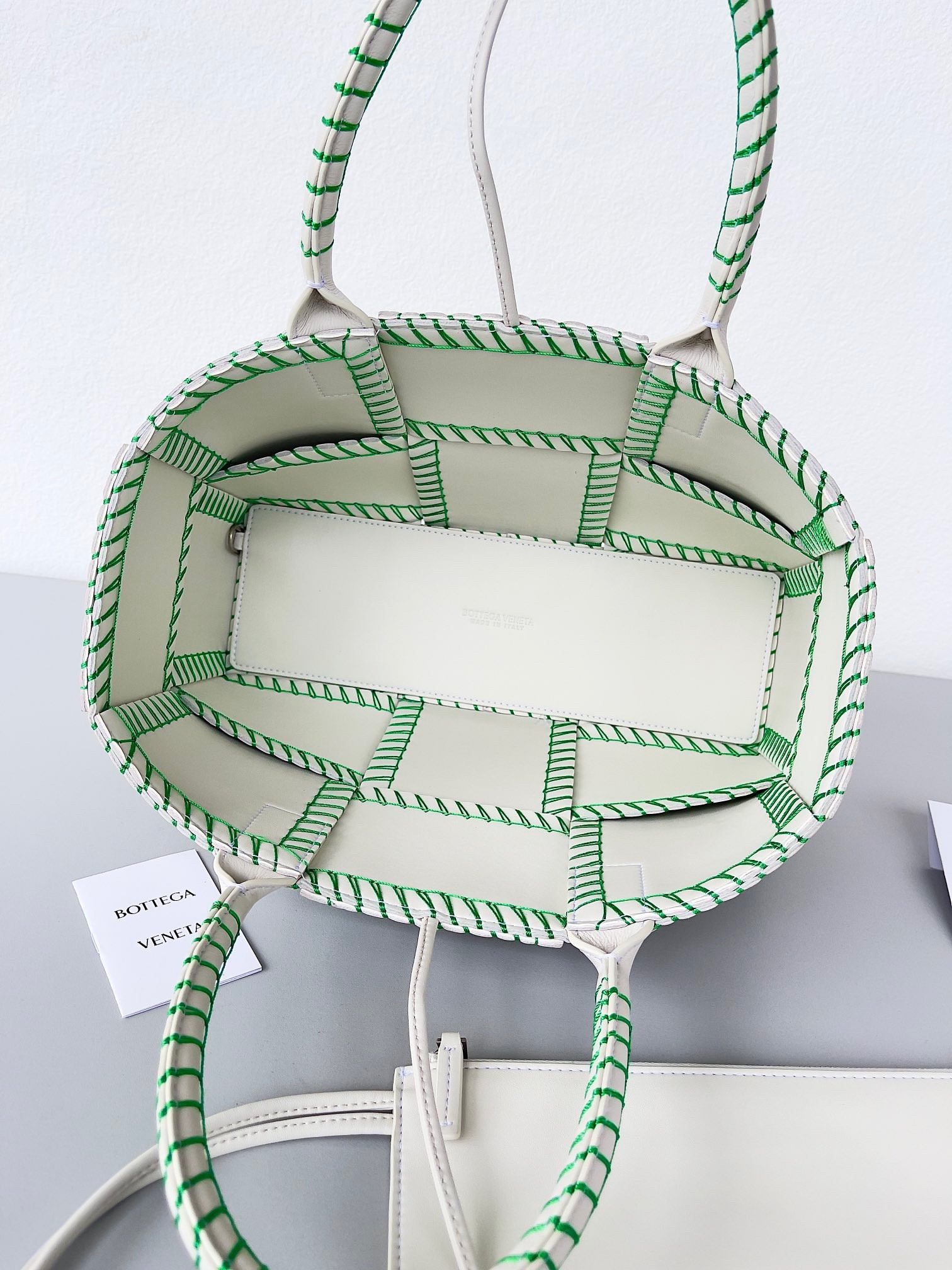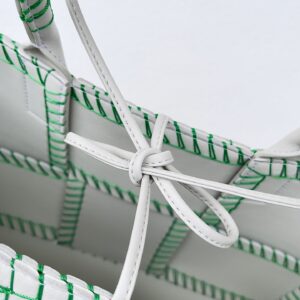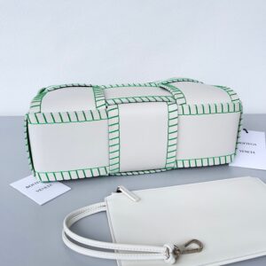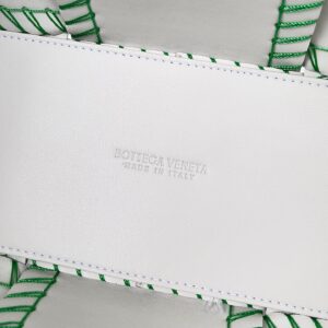 Bottega Veneta White Arco Small Tote with Green Overlock Stitching