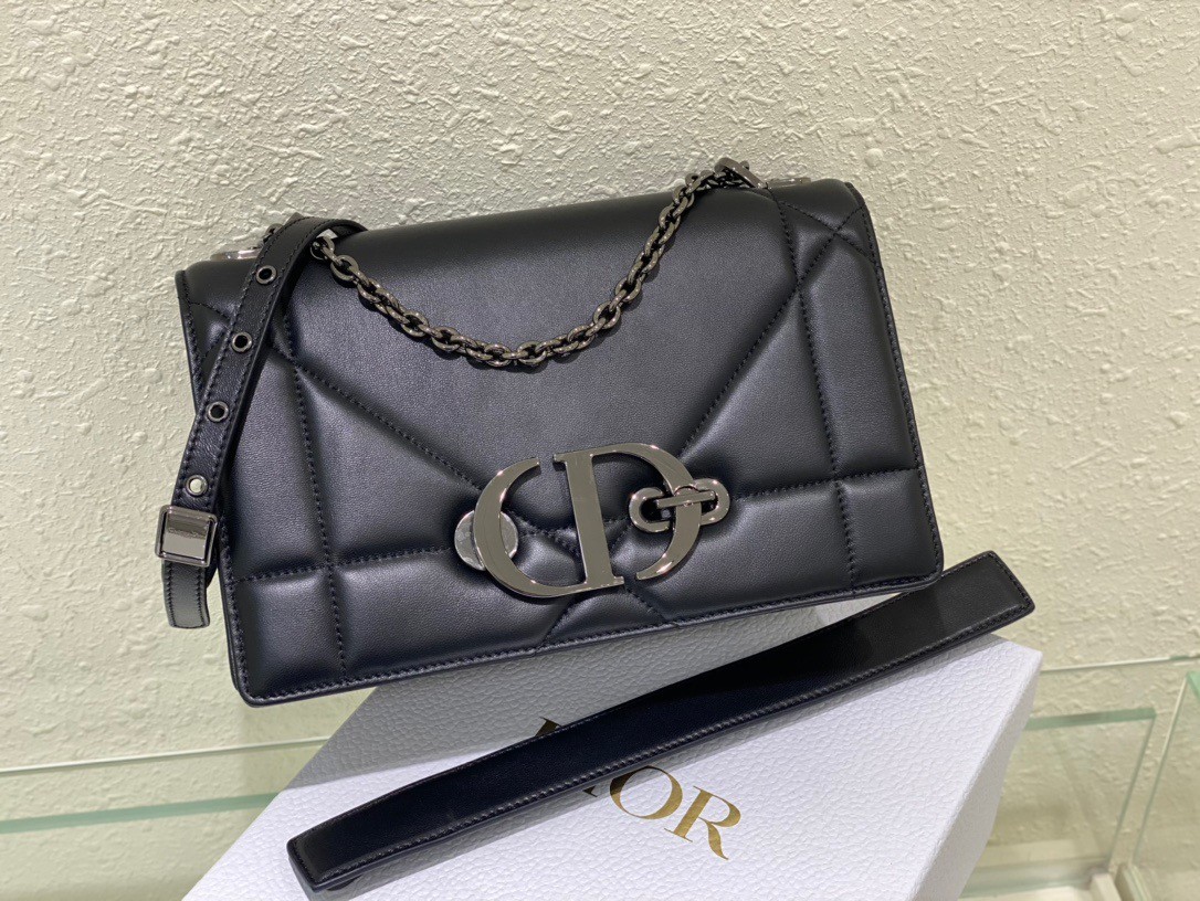 Dior 30 Montaigne Chain Bag With Handle In Black Lambskin
