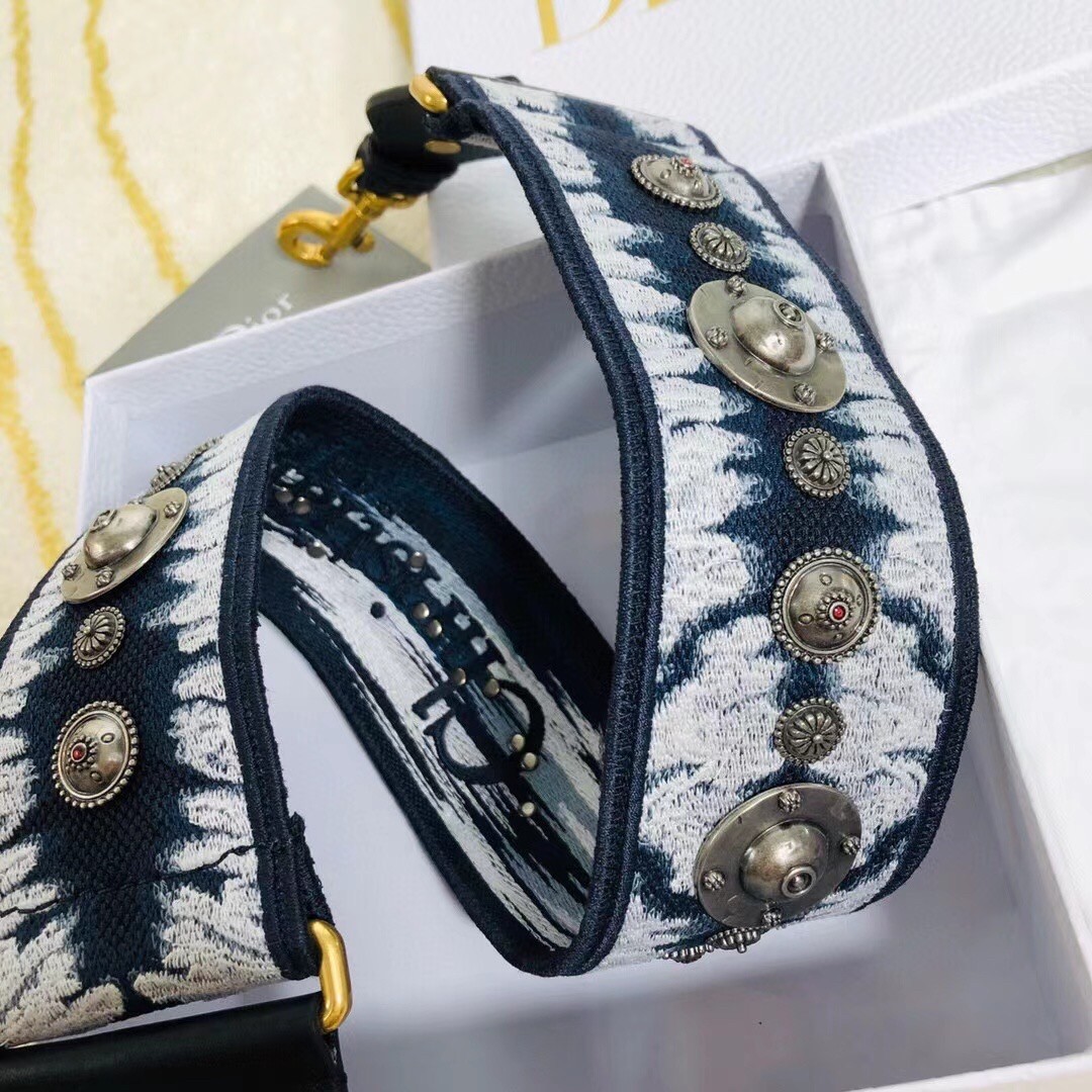 – Blue and white Tie & Dior embroidery with black calfskin