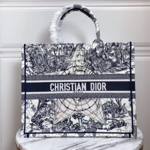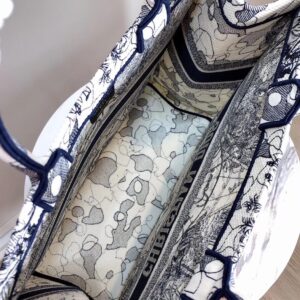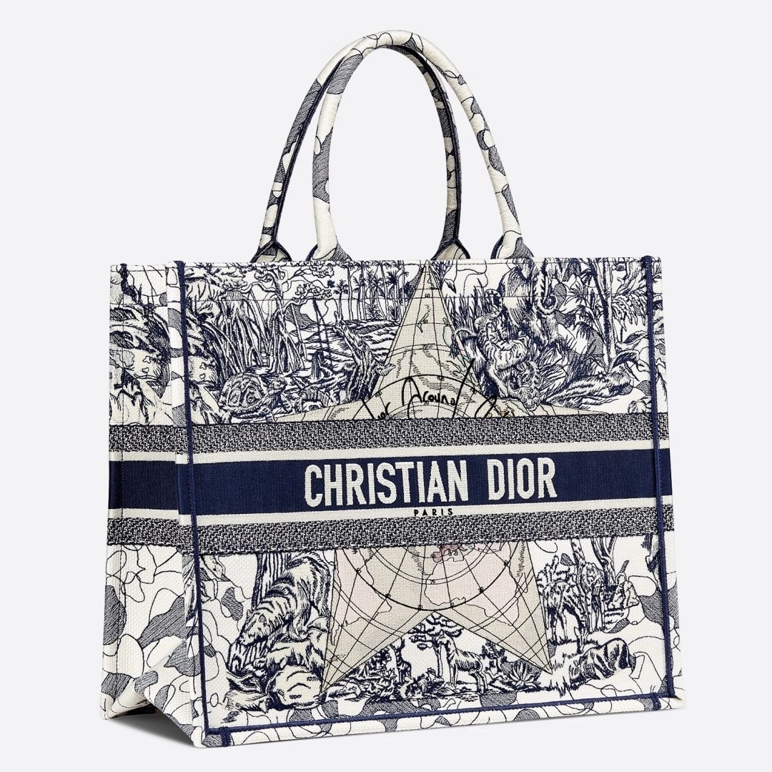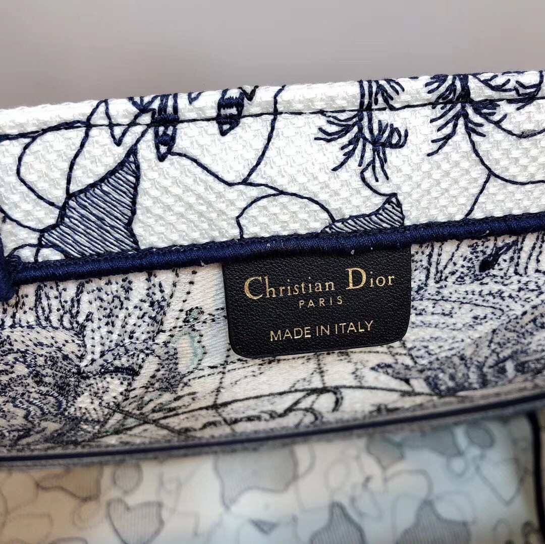 Dior Book Tote Bag In Blue Around The World Embroidered Canvas