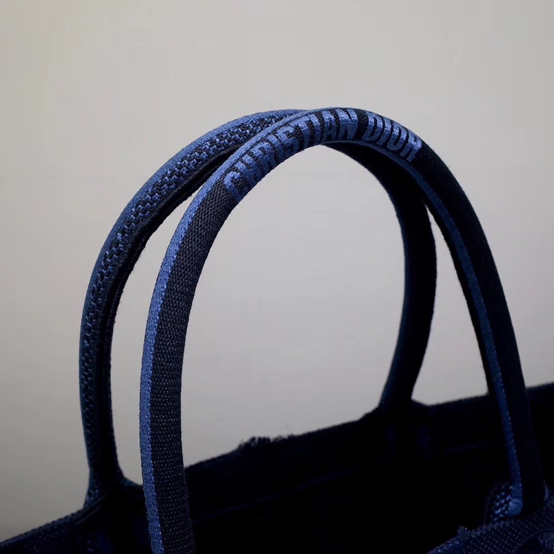 Dior Book Tote Bag In Blue Camouflage Embroidered Canvas