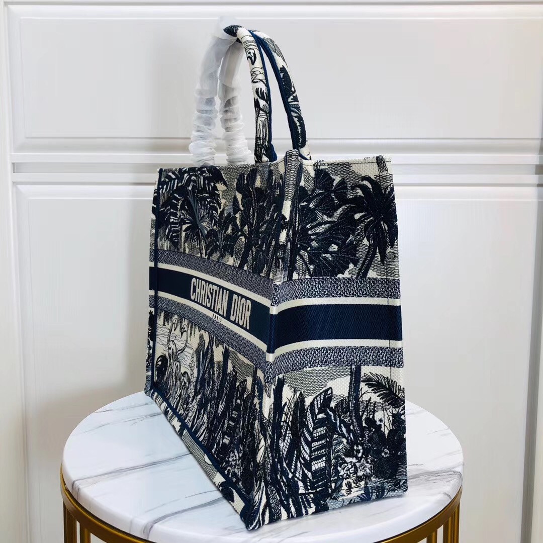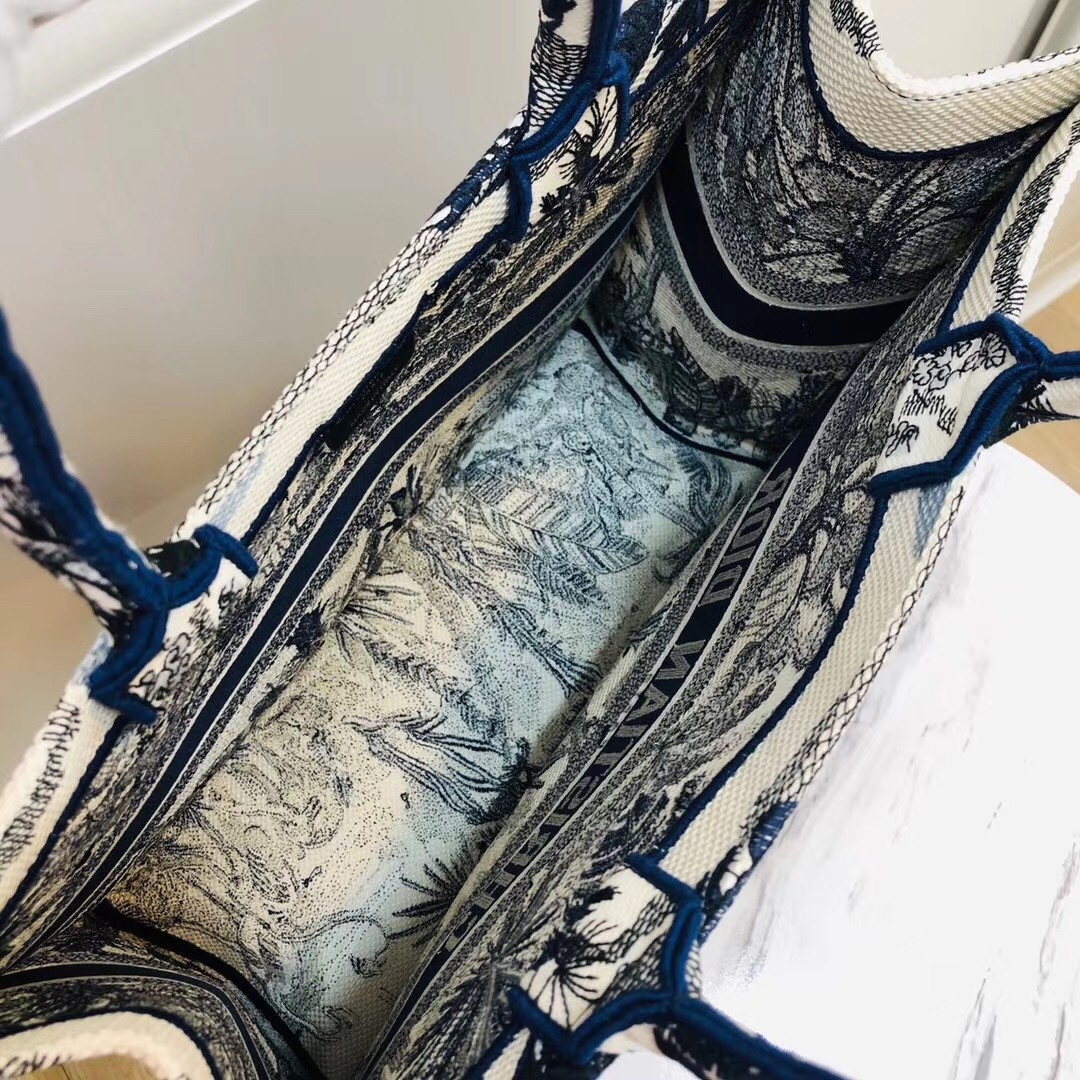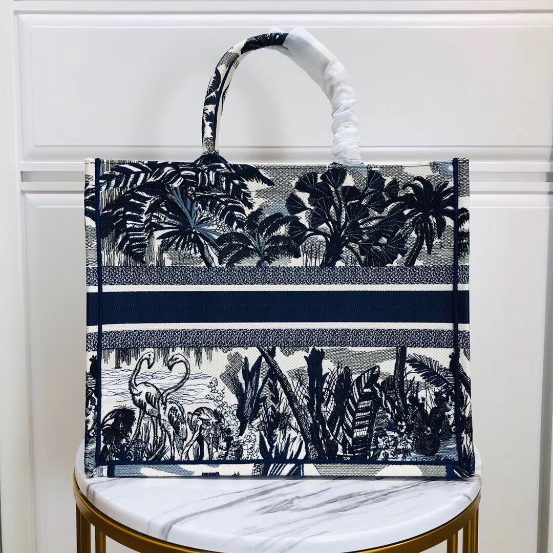 Dior Book Tote Bag In Blue Palm Tree Toile de Jouy Embroidery