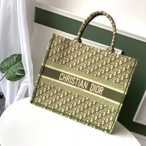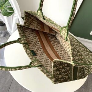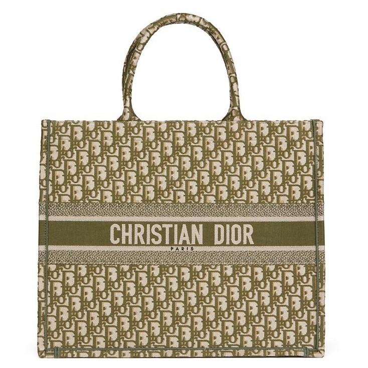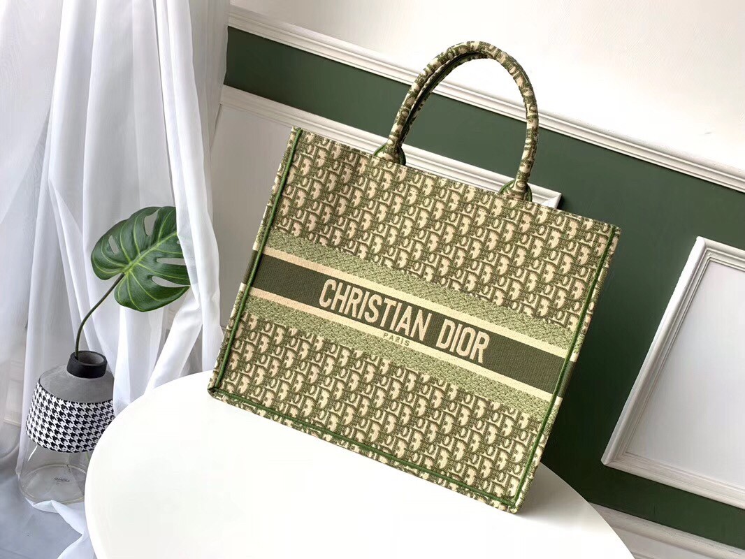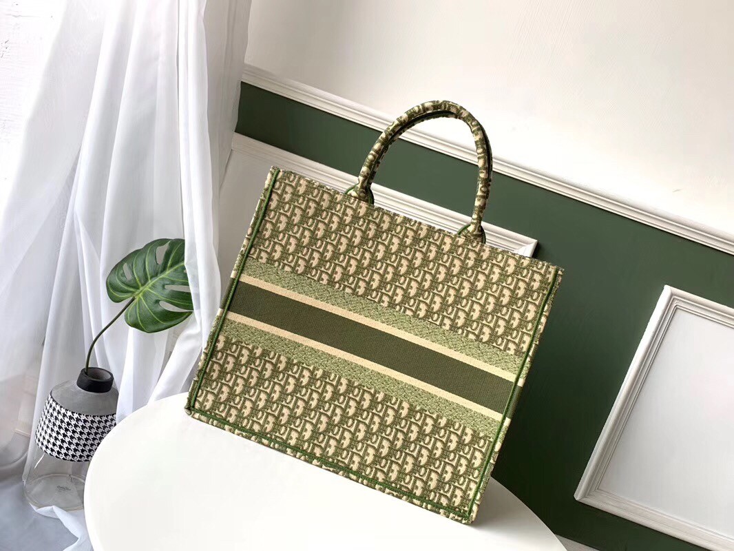 Dior Book Tote Bag In Green Oblique Canvas