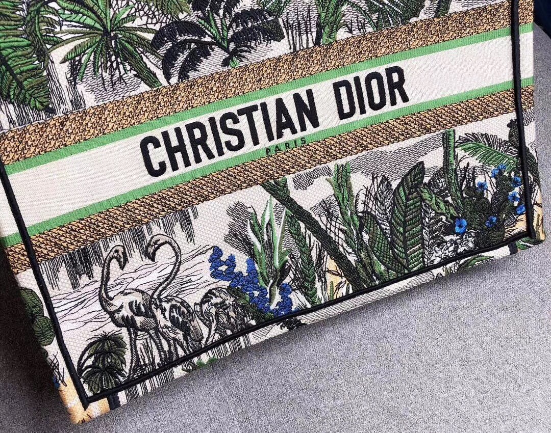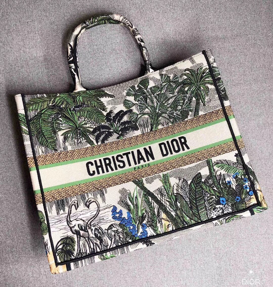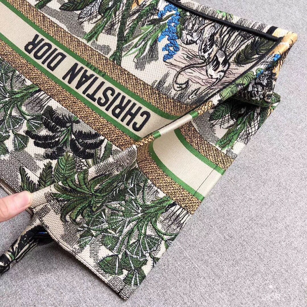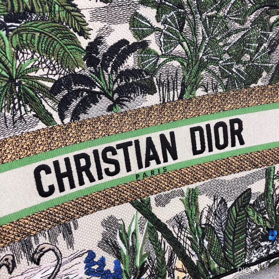Dior Book Tote Bag In Green Toile De Jouy Tropicalia