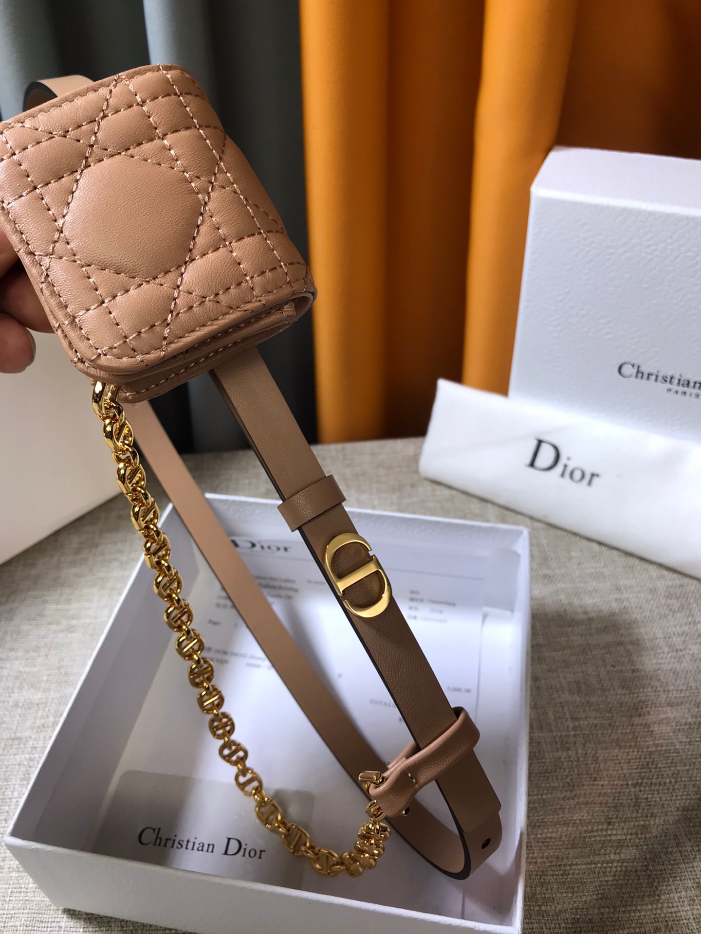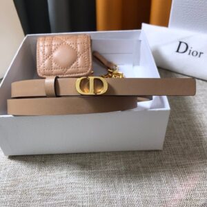 Dior Caro 15MM Belt with Removable Pouch in Beige Calfskin