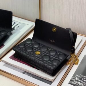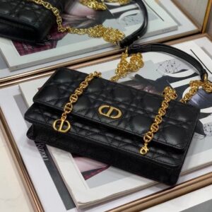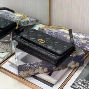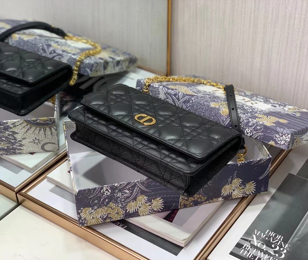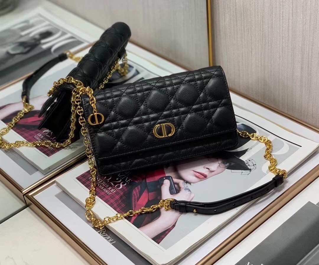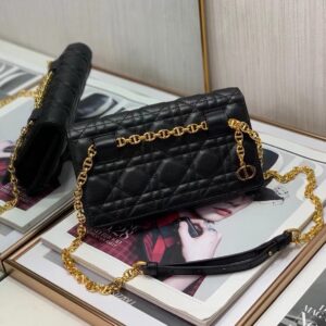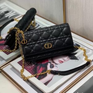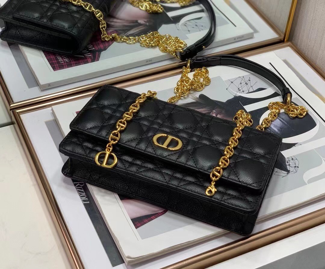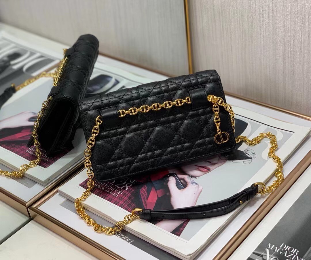 Dior Caro Belt Pouch with Chain In Black Calfskin