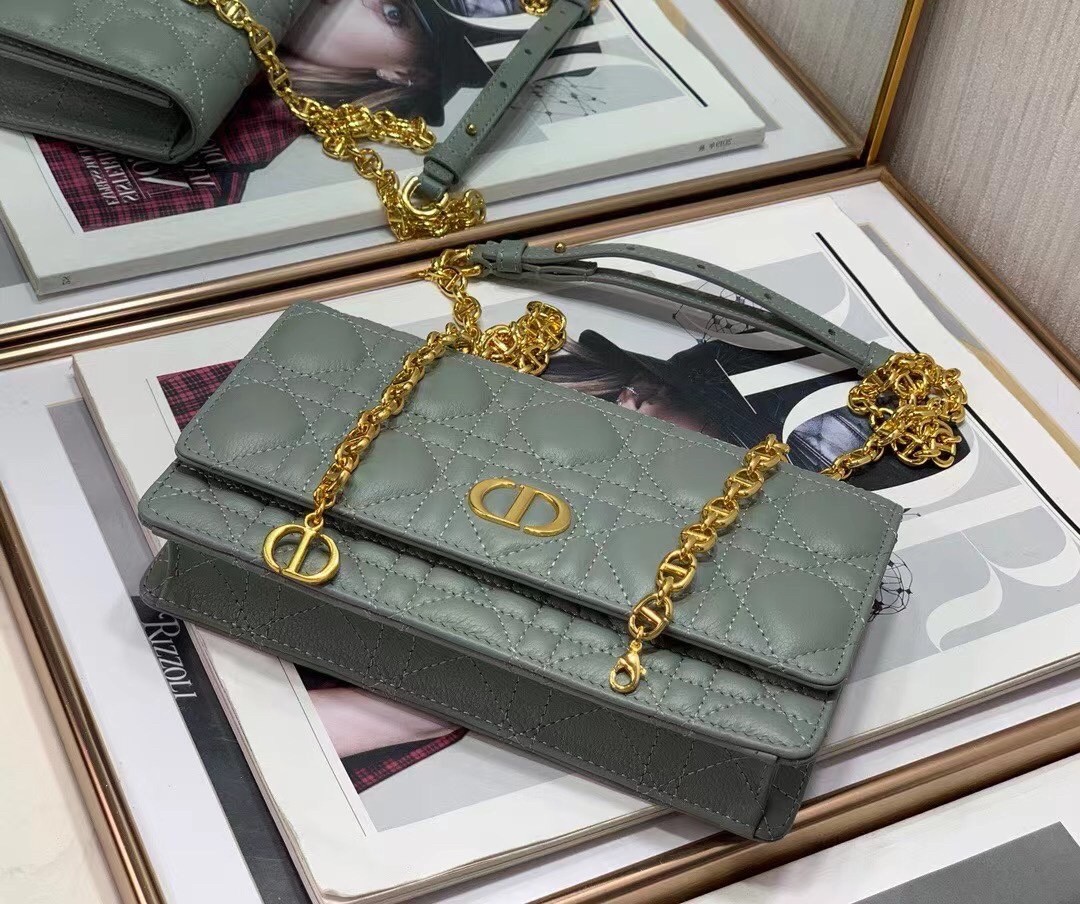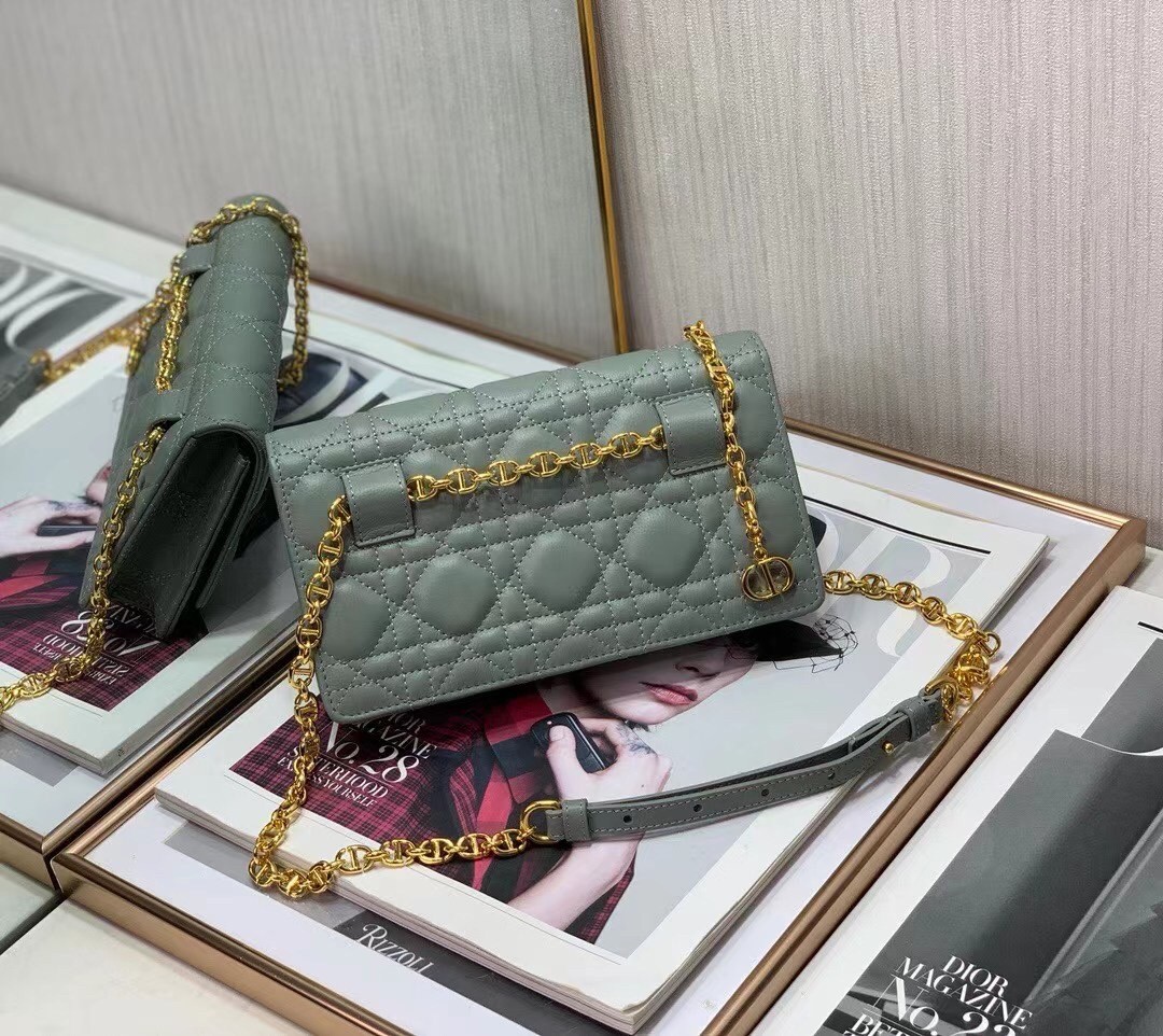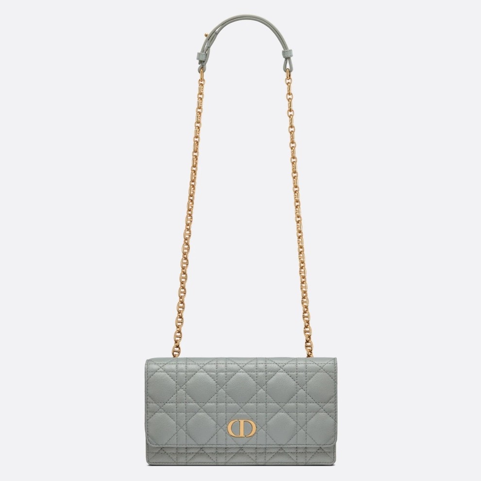 Dior Caro Belt Pouch with Chain In Grey Calfskin