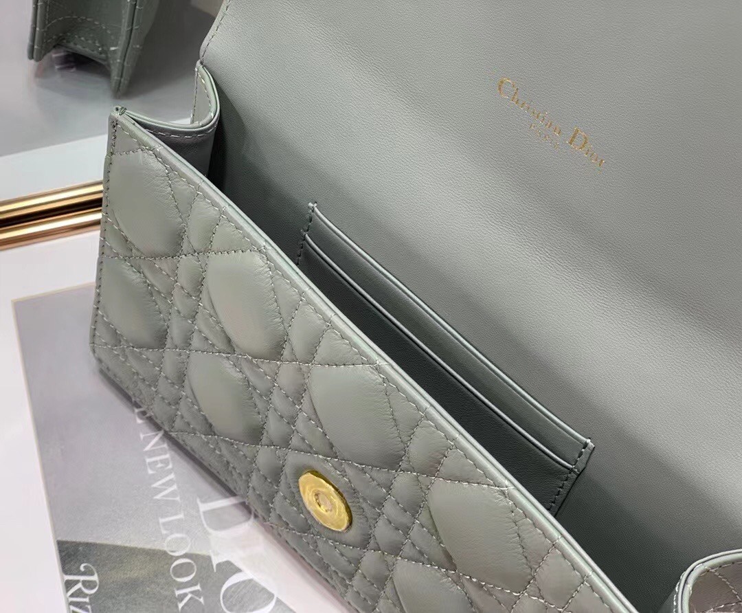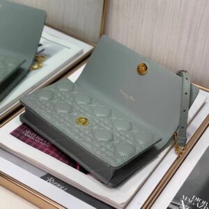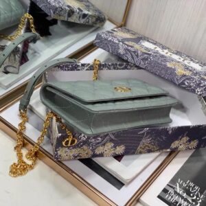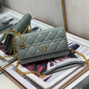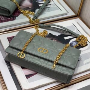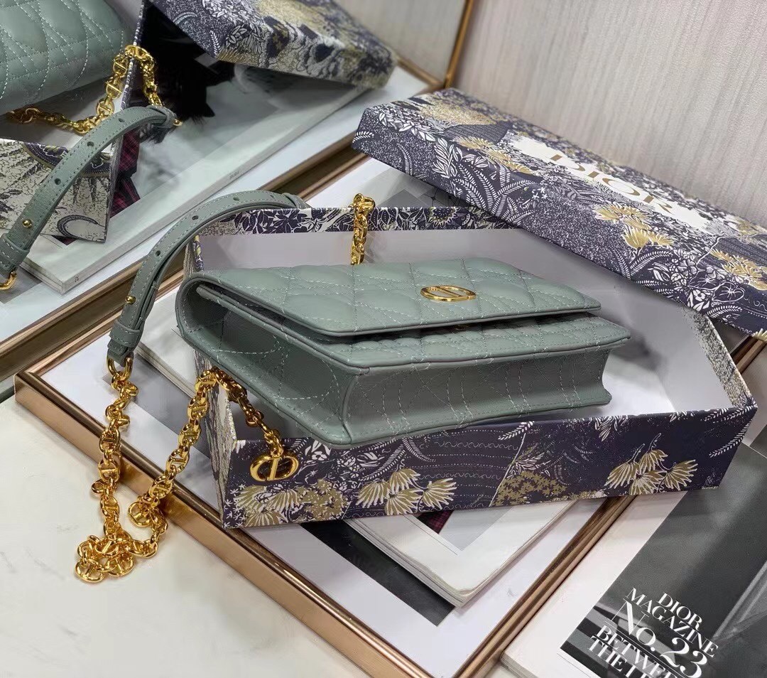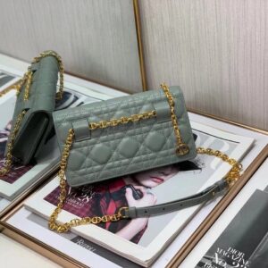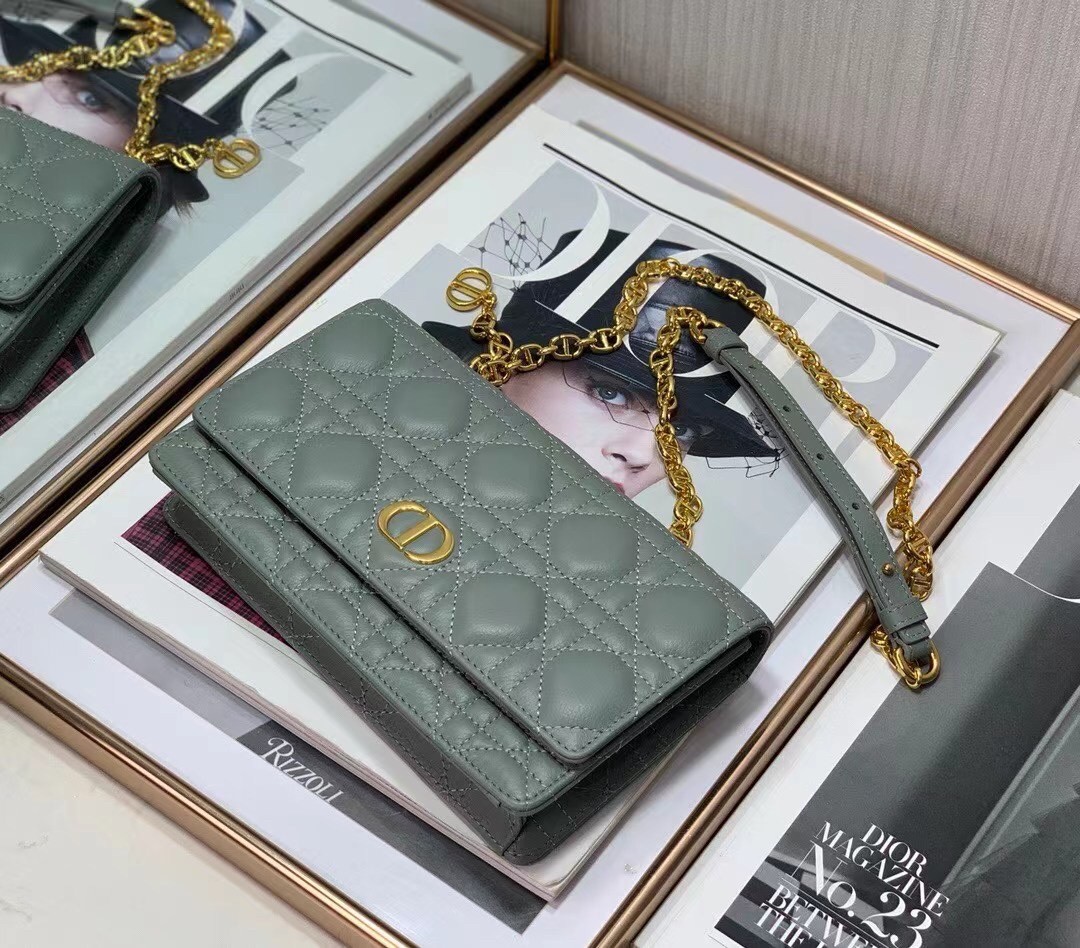 Dior Caro Belt Pouch with Chain In Grey Calfskin