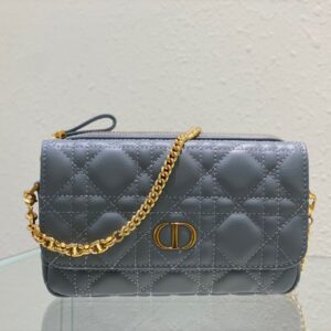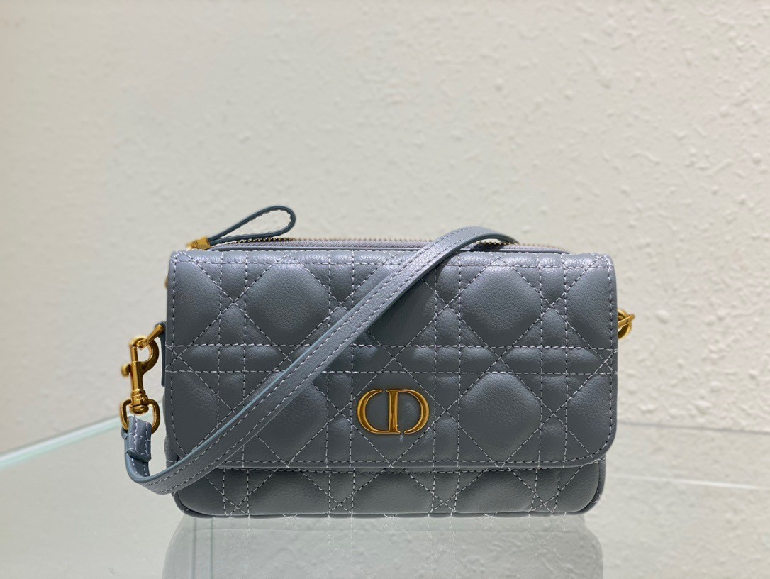 Dior Caro Pouch In Cloud Blue Cannage Calfskin