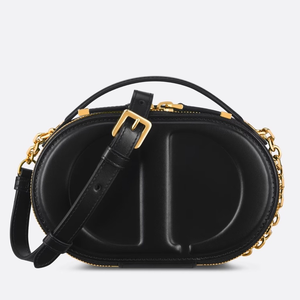 Dior CD Signature Oval Camera Bag in Black Calfskin