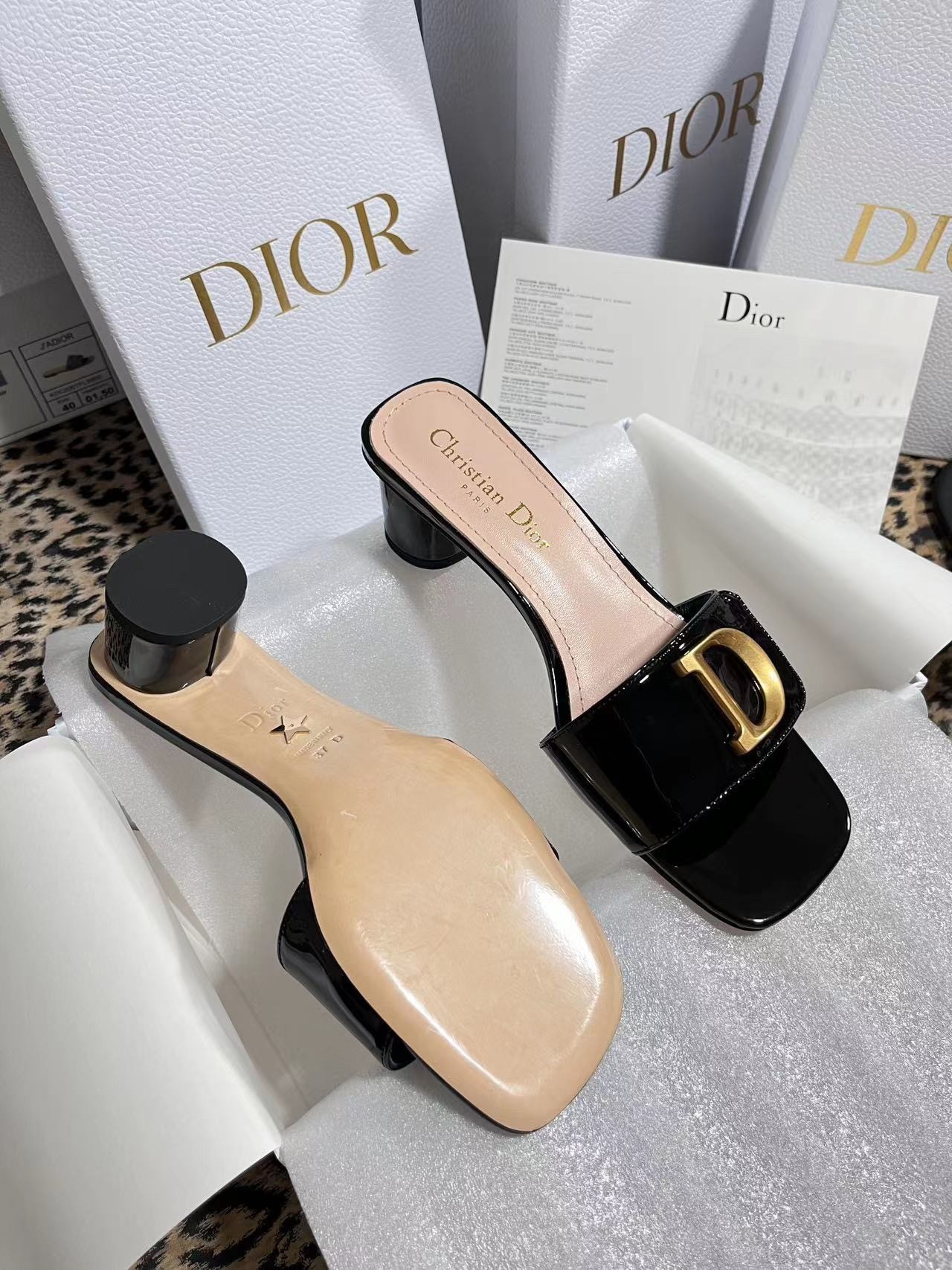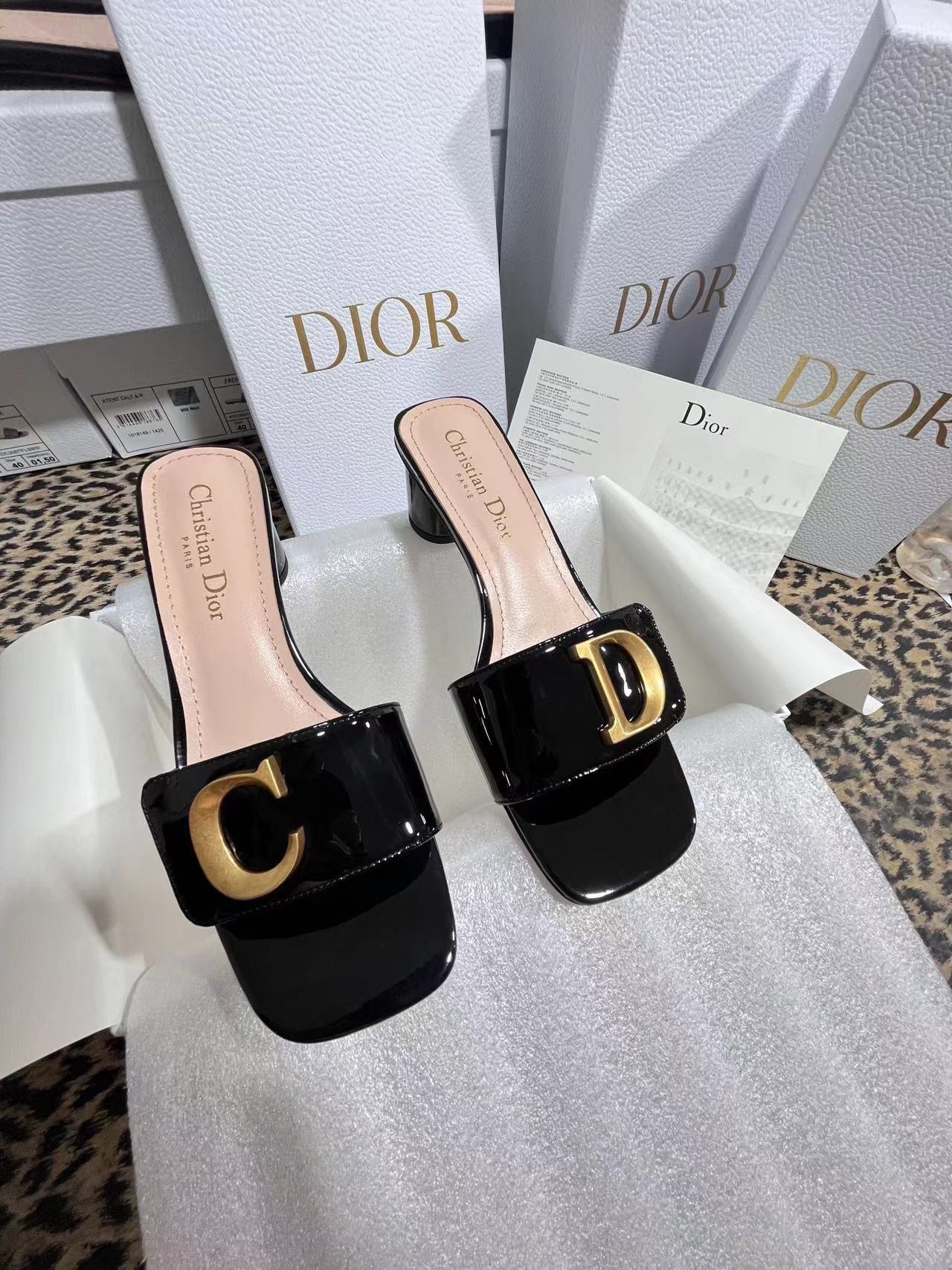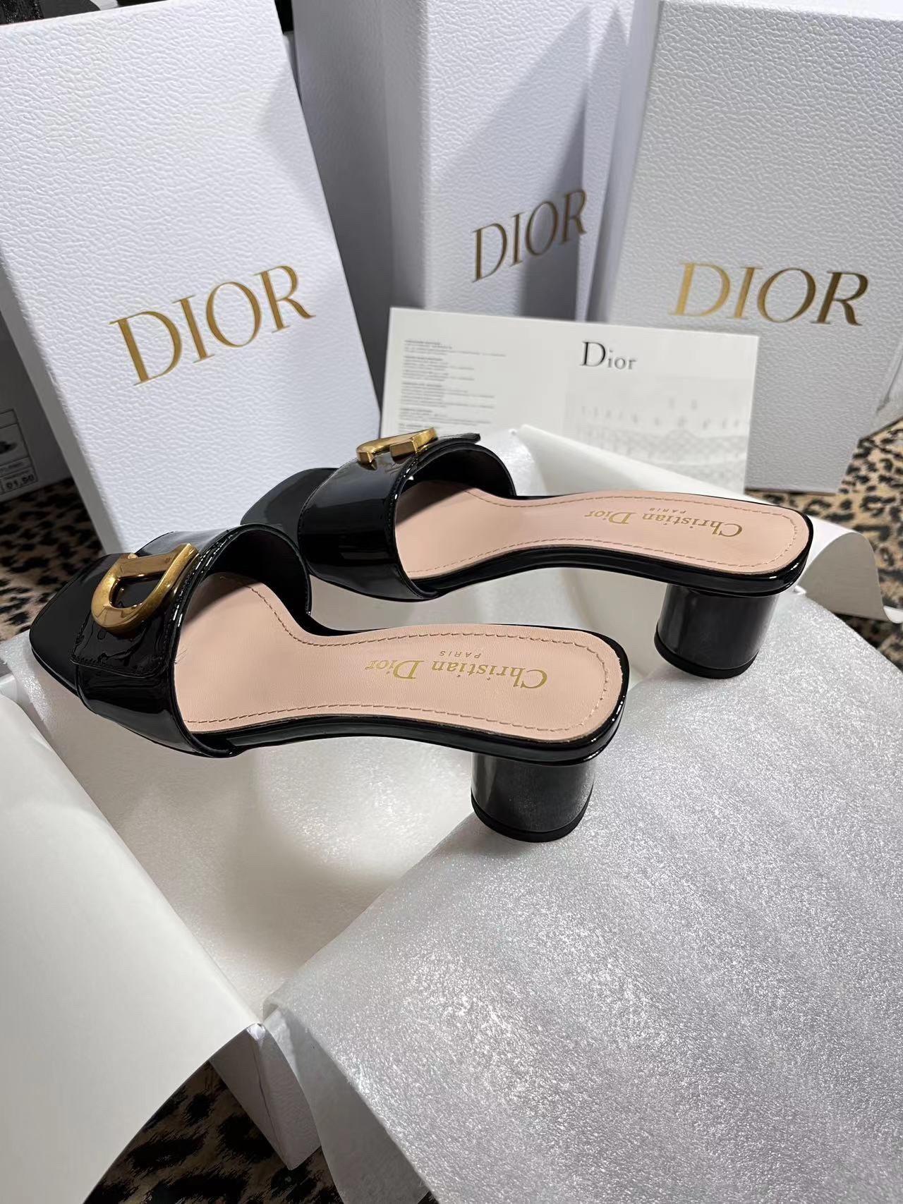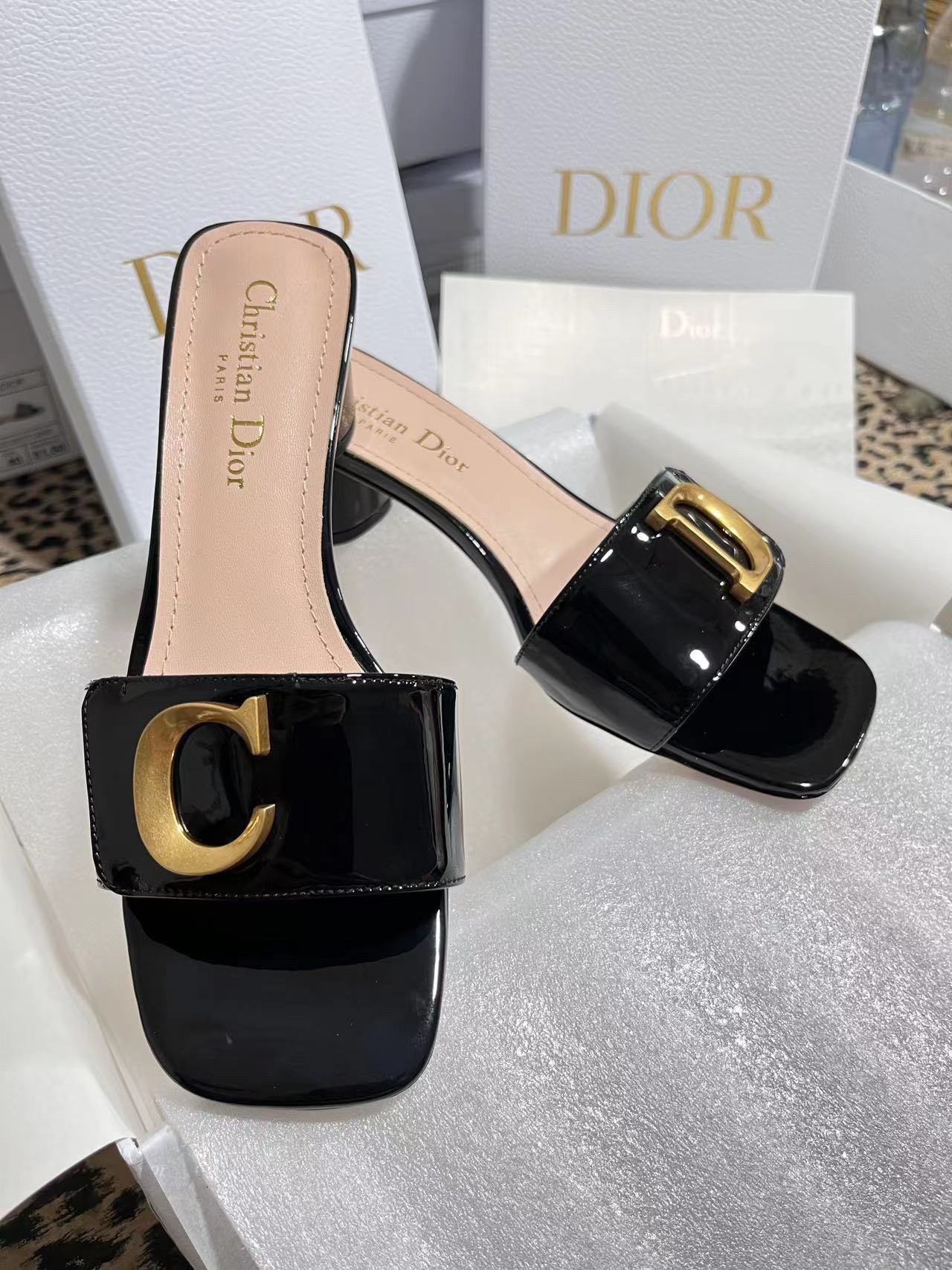 Dior C'est Heeled 50MM Slides in Black Patent Calfskin