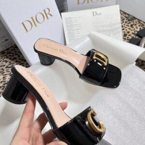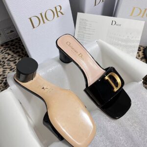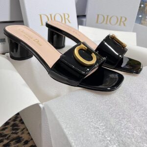 Dior C’est Heeled 50MM Slides in Black Patent Calfskin