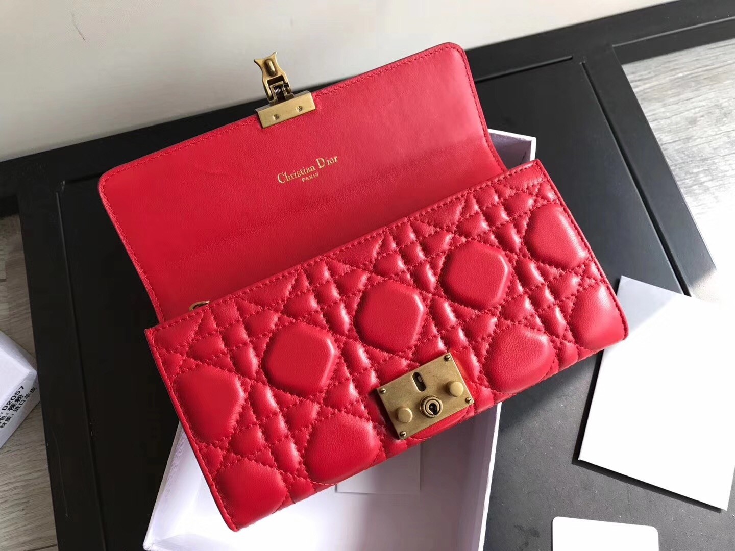 Dior DiorAddict Continental Wallet In Red Lambskin