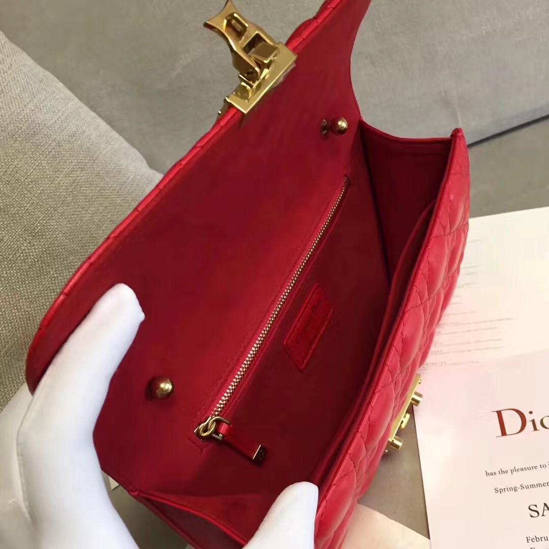 Dior Dioraddict Flap Bag In Red Lambskin