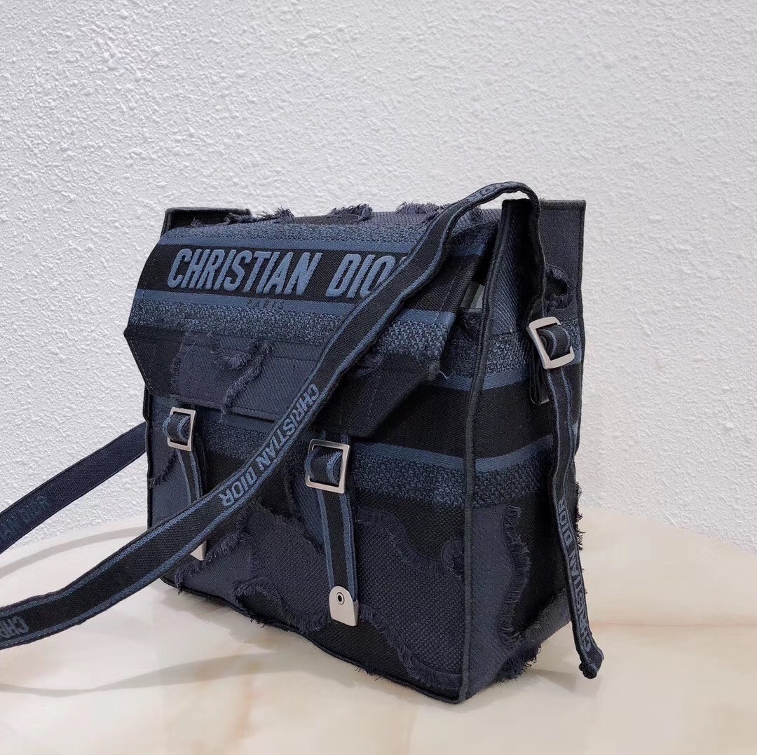 Dior Diorcamp Messenger Bag In Blue Camouflage Canvas