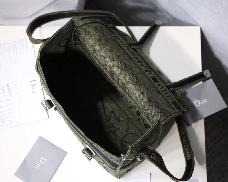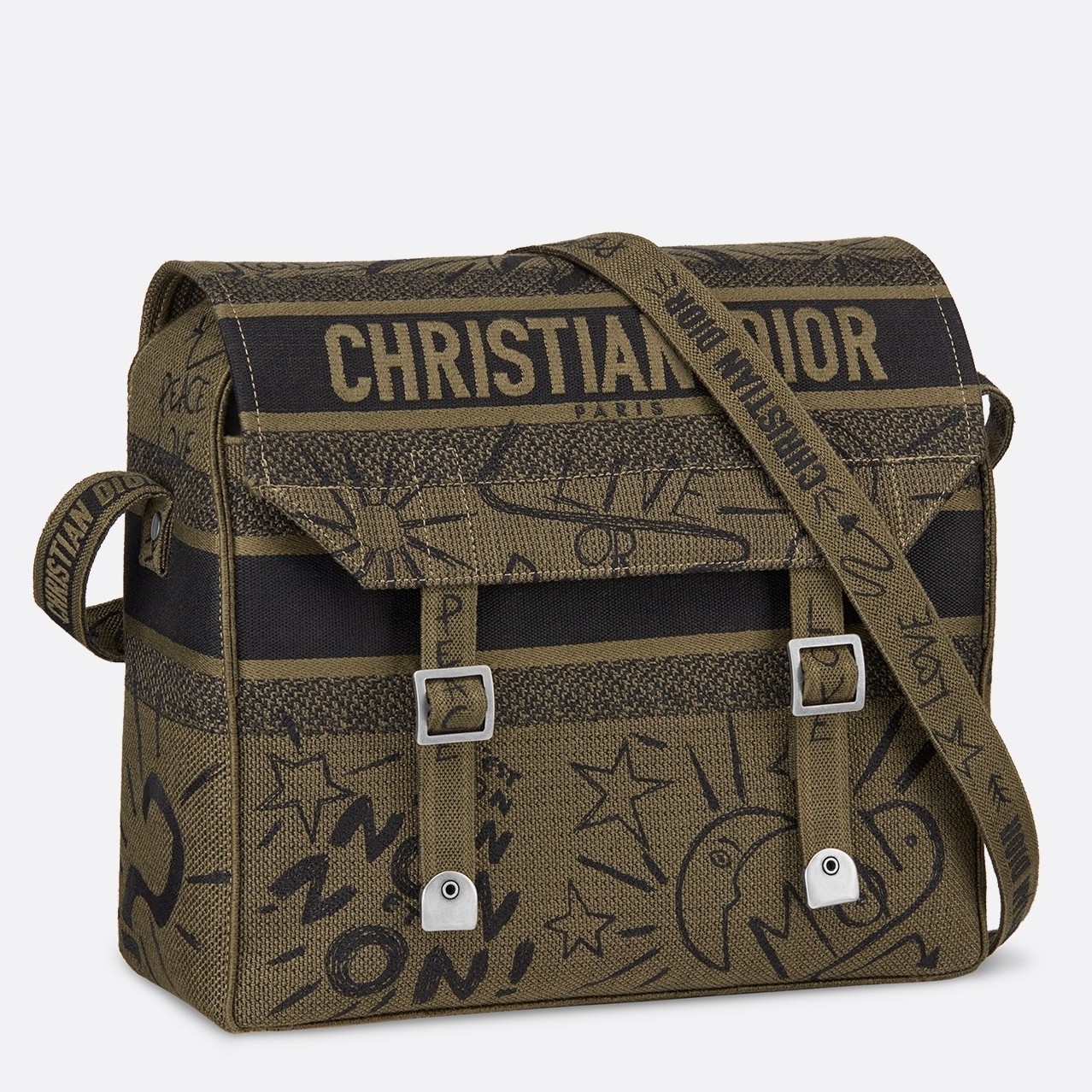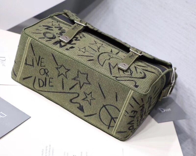 Dior Diorcamp Messenger Bag In Green Embroidered Canvas