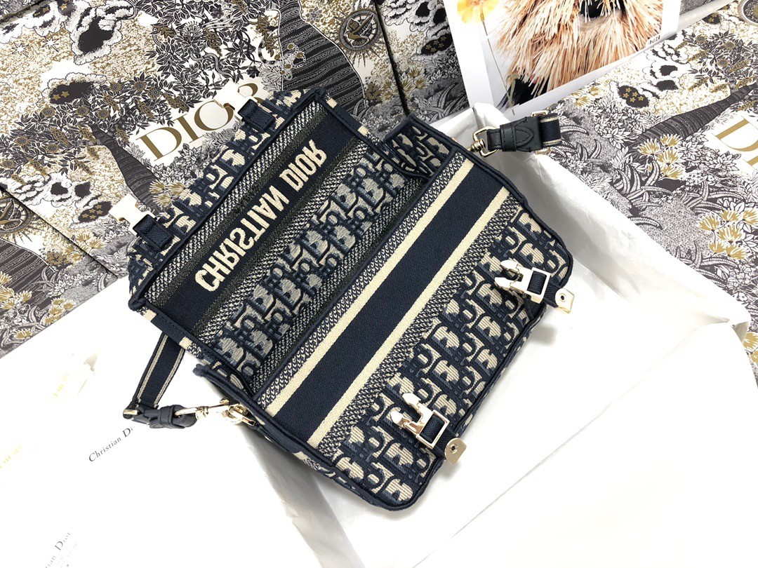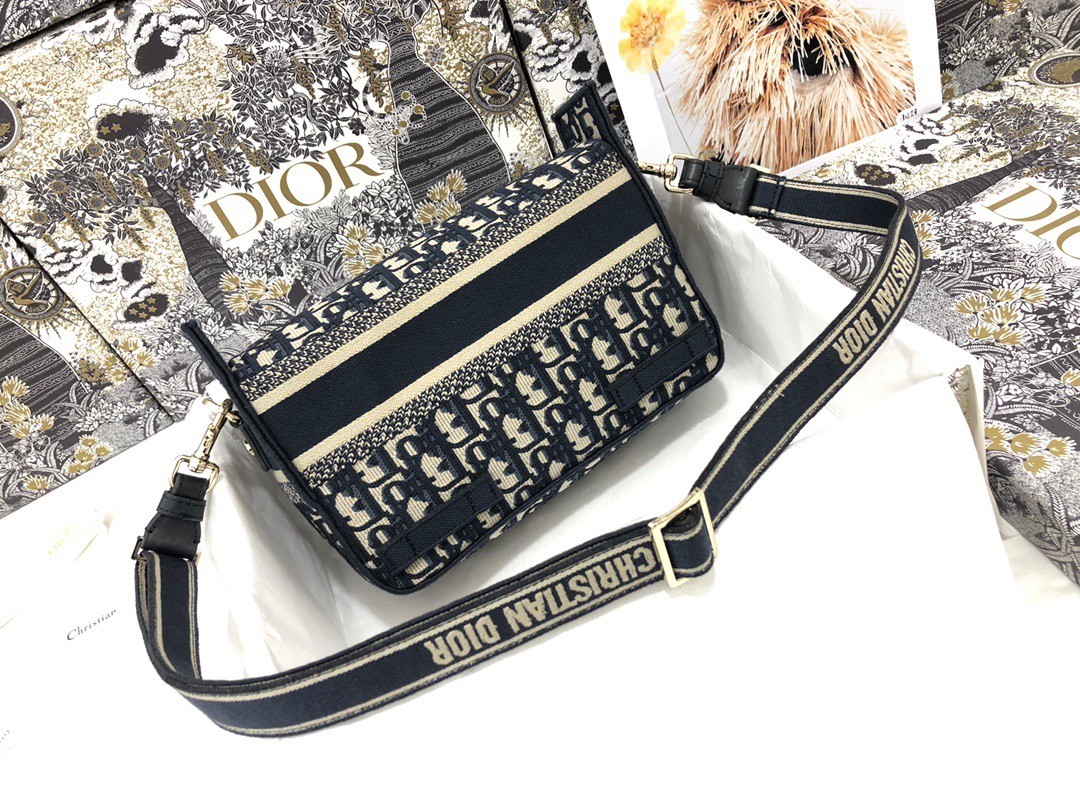 Dior Diorcamp Small Messenger Bag In Blue Oblique Embroidery