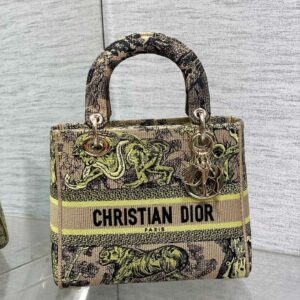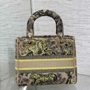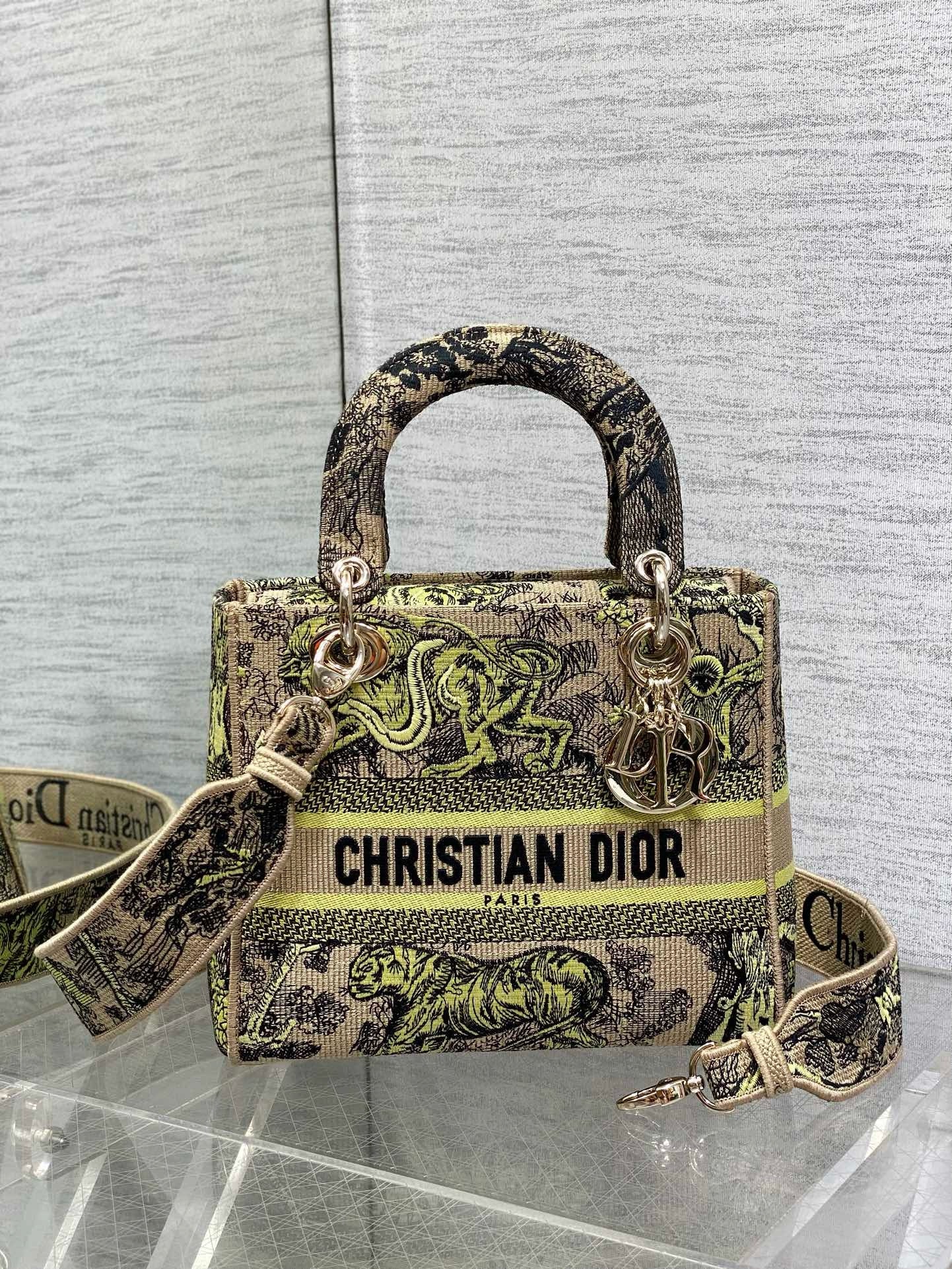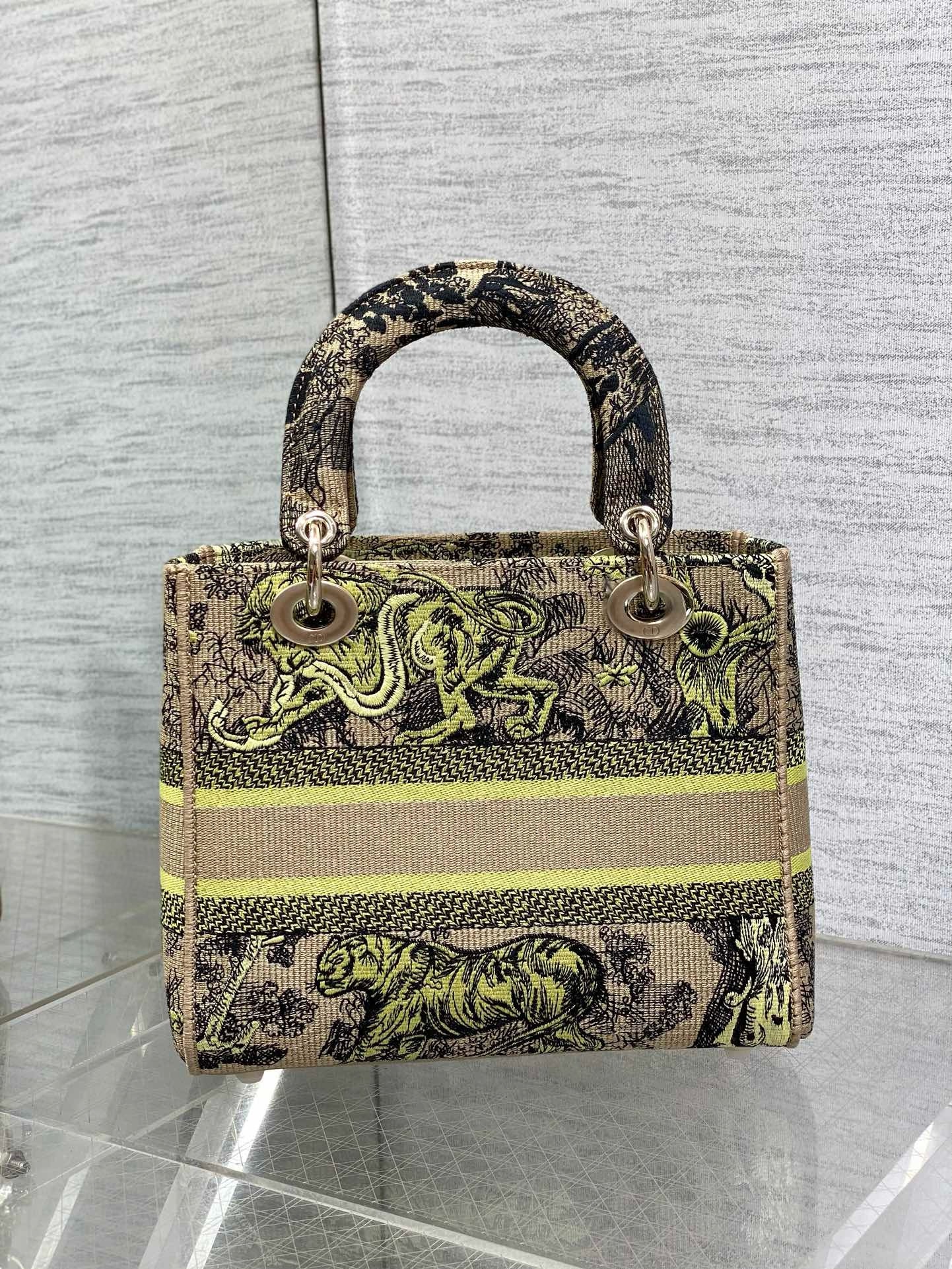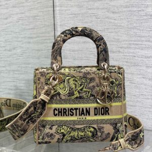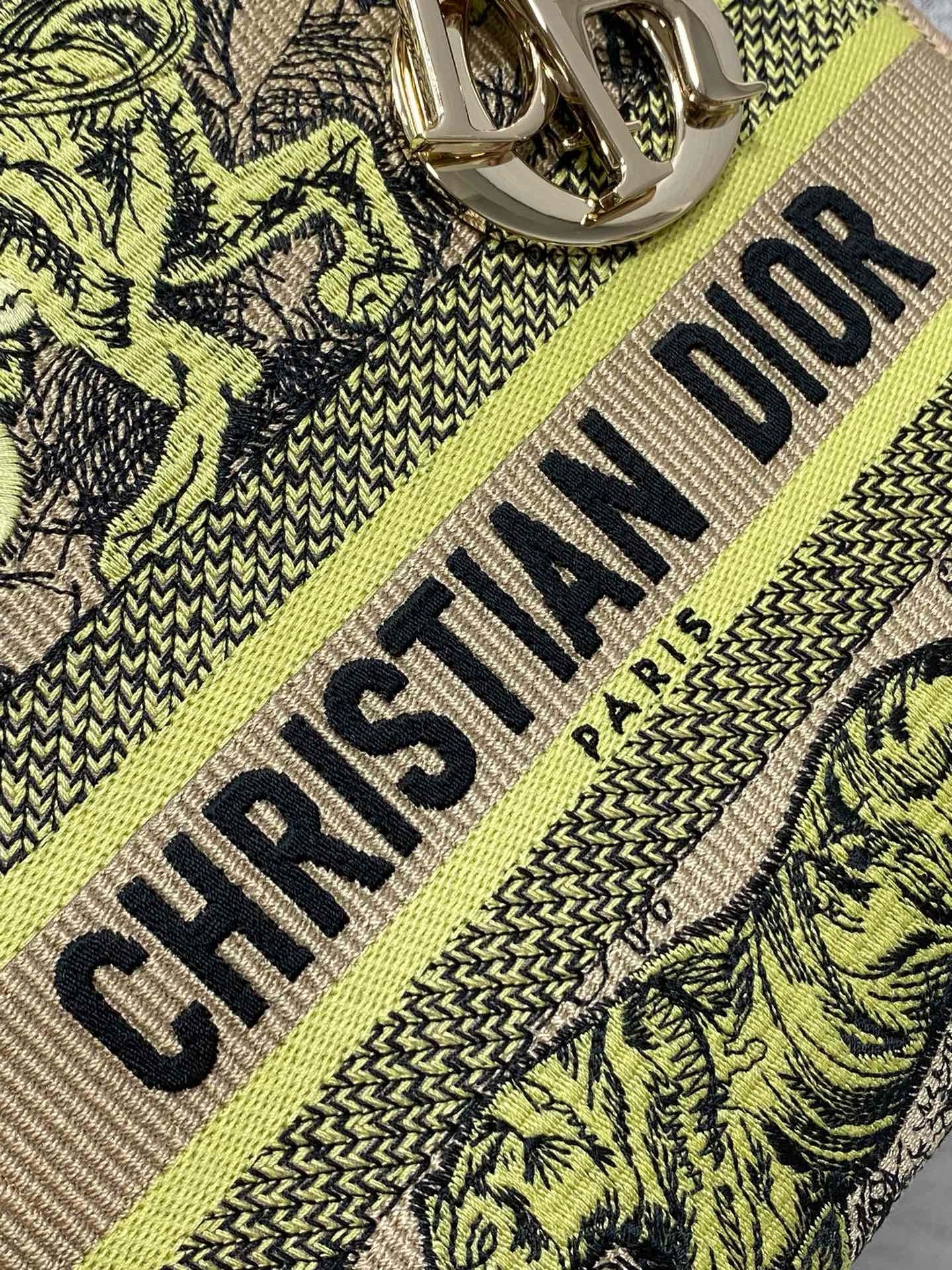 Dior Dioriviera Lady D-Lite Medium Bag in Raffia with Lime Toile de Jouy Sauvage Embroidery