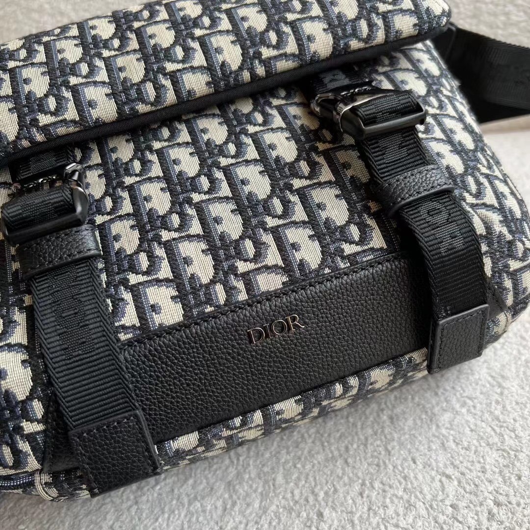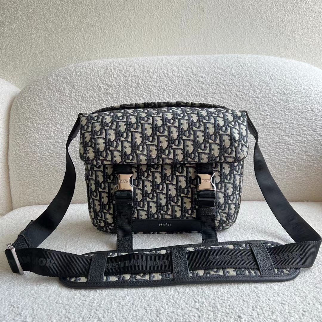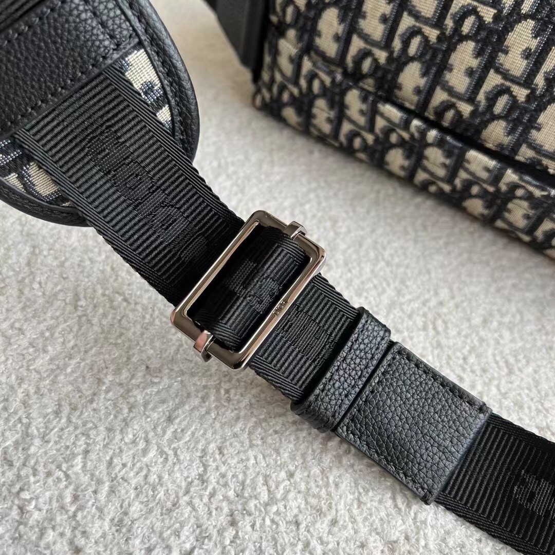 – Adjustable ‘Christian Dior’ nylon jacquard shoulder strap with padded leather insert