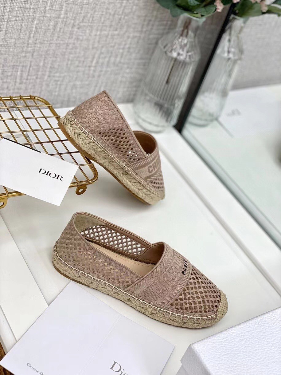 Dior Granville Espadrille In Nude Mesh Embroidery