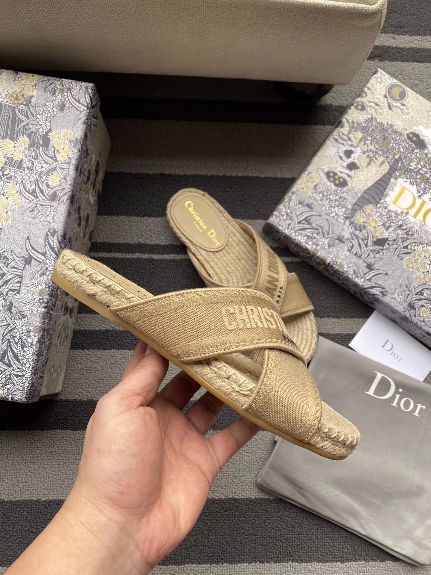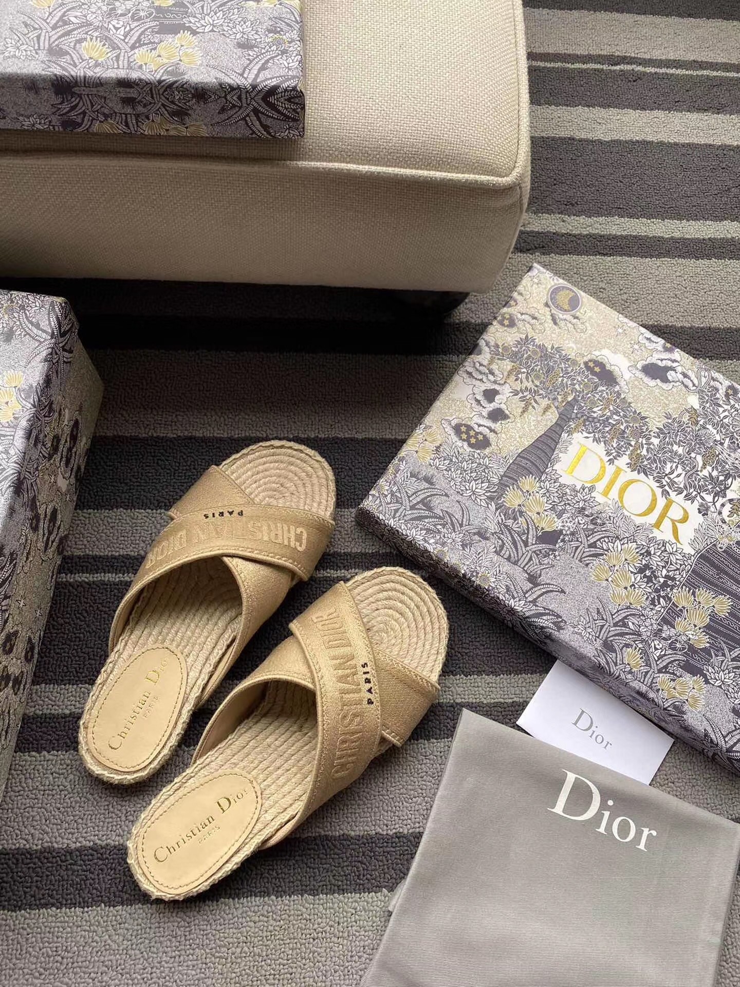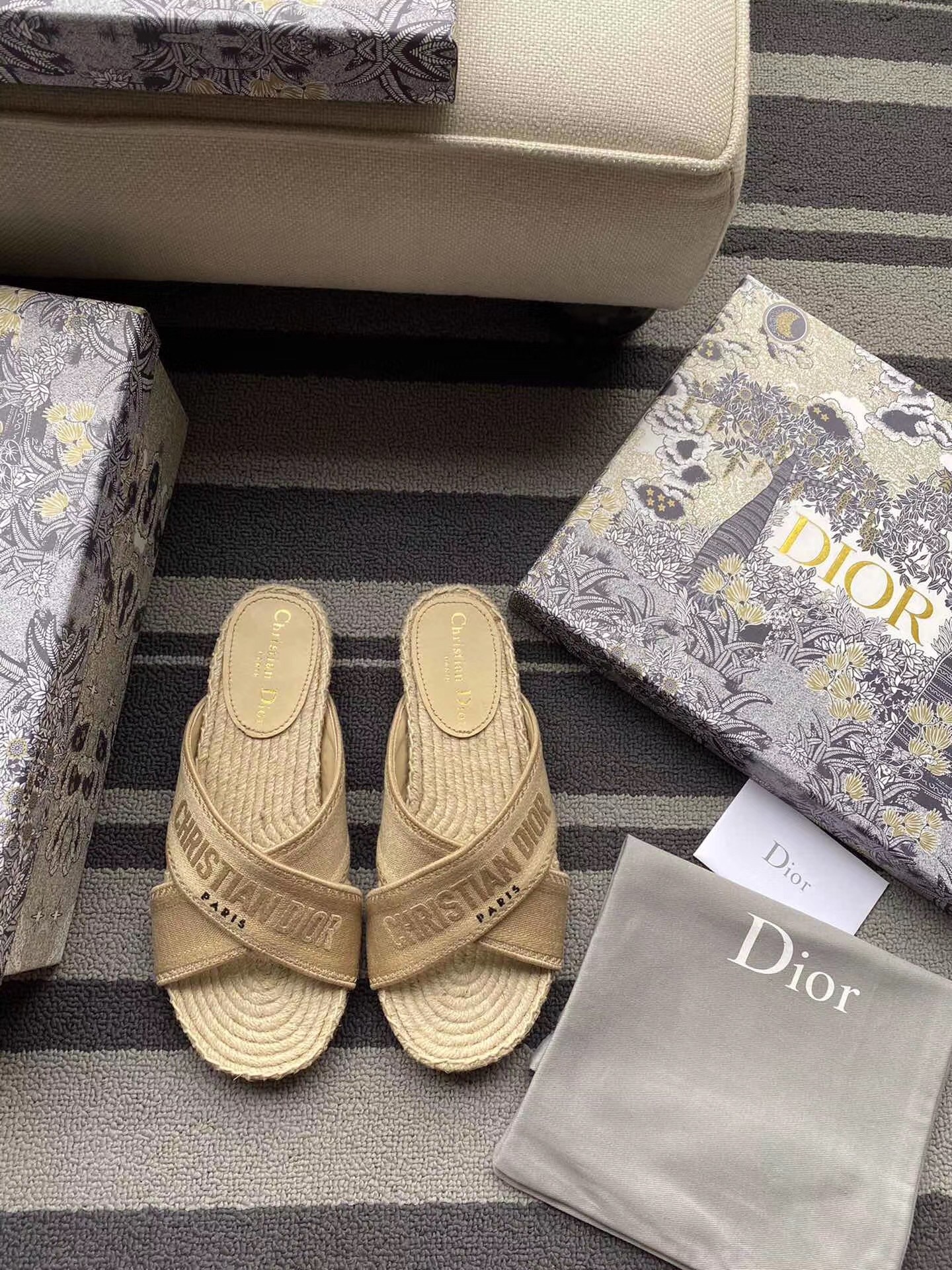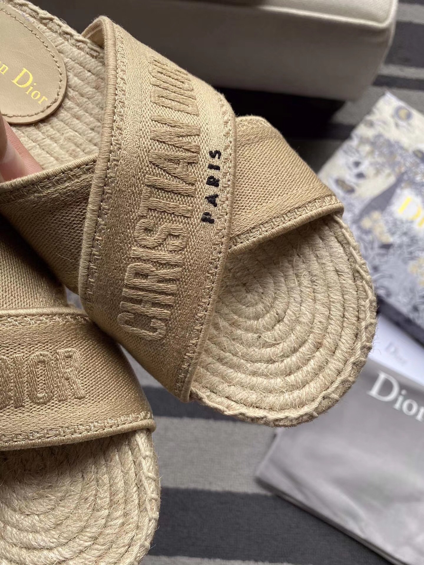 – Rope wedge and thin rubber sole with a star emblem, a signature Christian Dior symbol