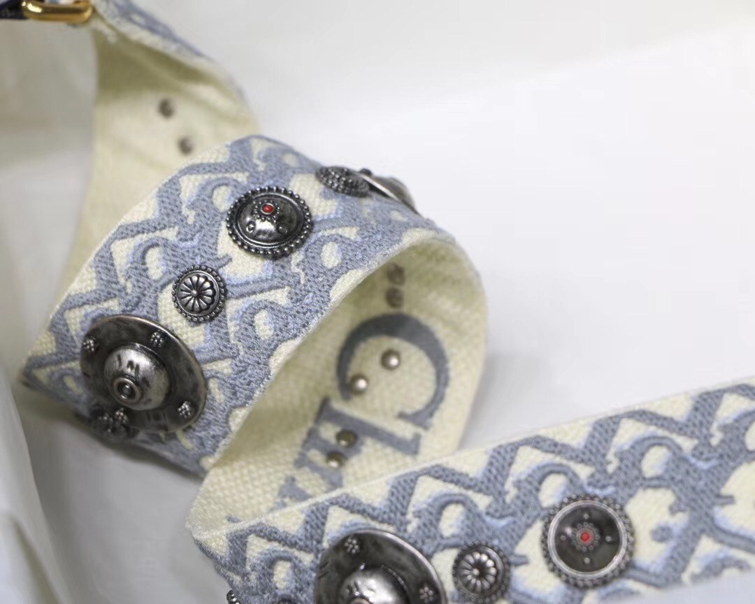 – Gray multicolor Dior Oblique embroidery with gray calfskin