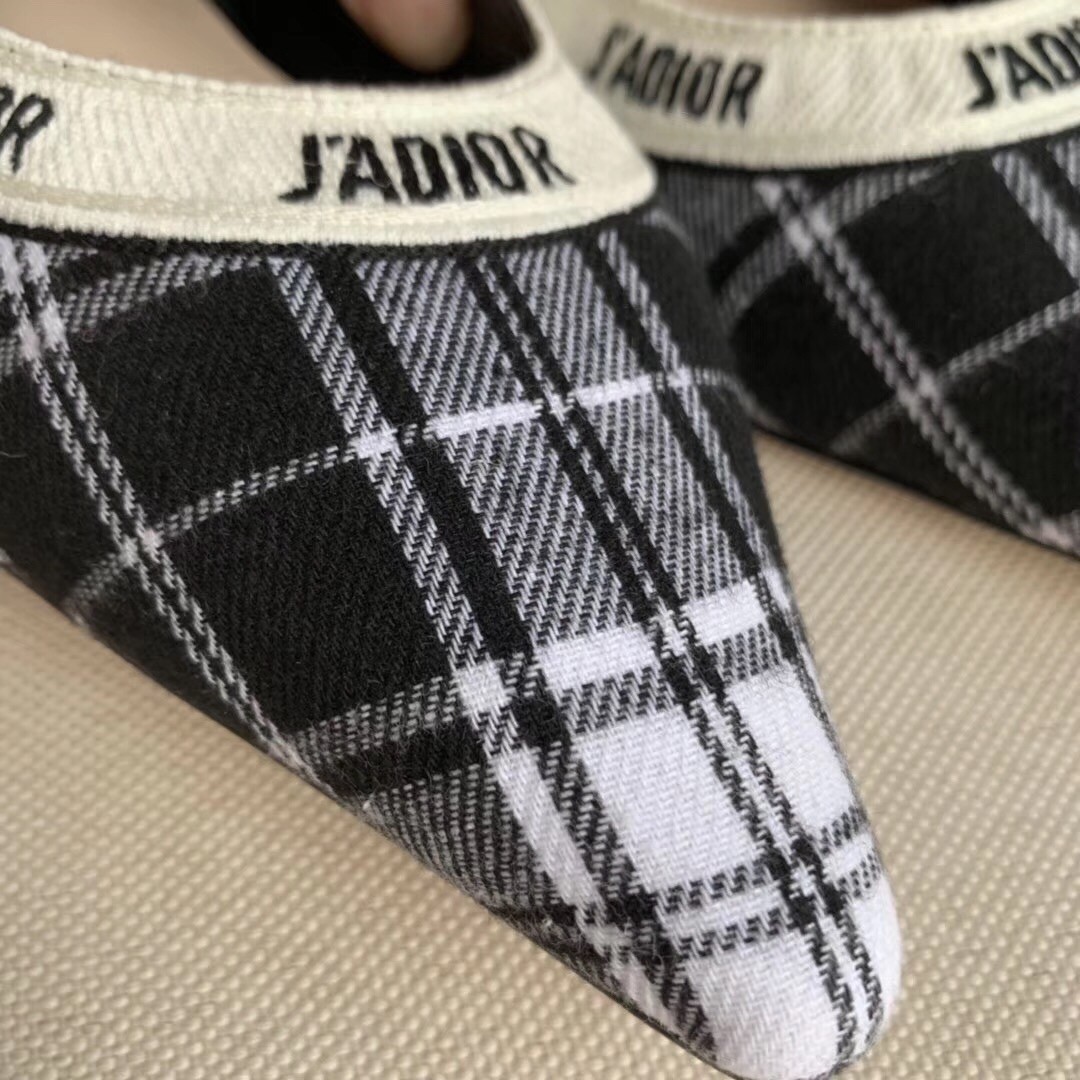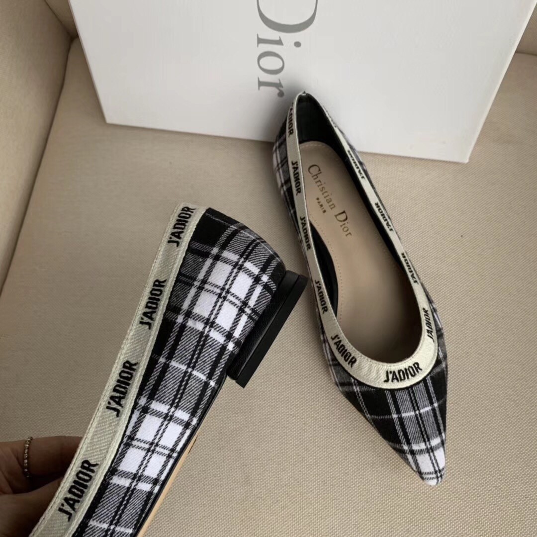 Dior J’Adior Ballet Flat In Black and White Tartan Fabric