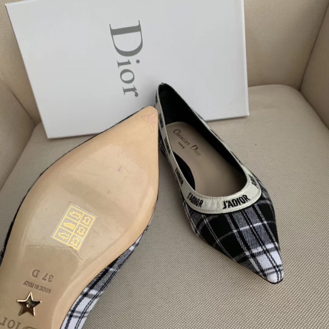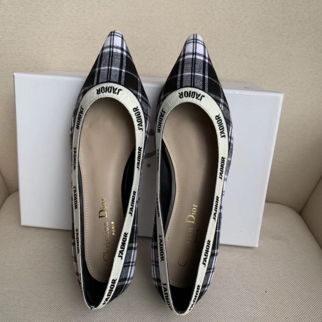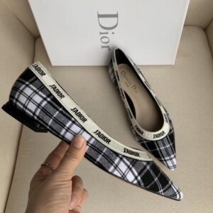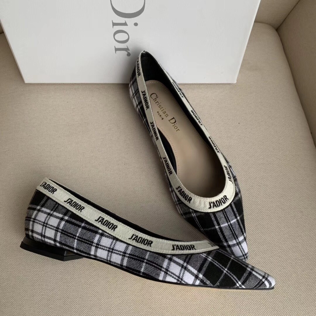 Dior J'Adior Ballet Flat In Black and White Tartan Fabric