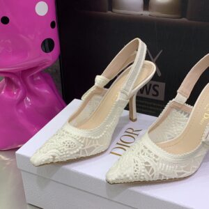 Dior J’Adior Slingback Pumps 100MM In White Macrame Embroidered Cotton