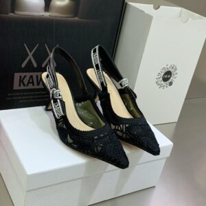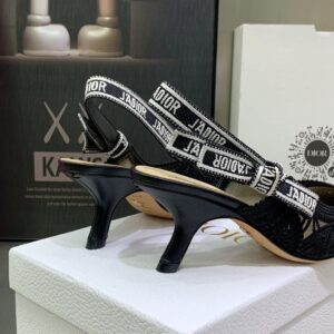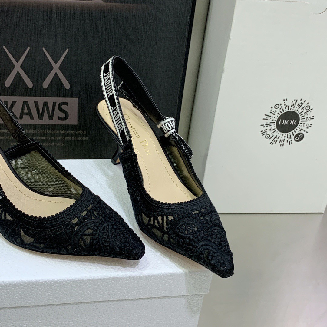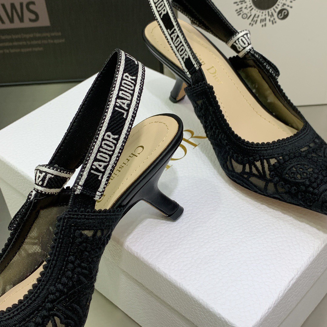 Dior J’Adior Slingback Pumps 65MM In Black Macrame Embroidered Cotton