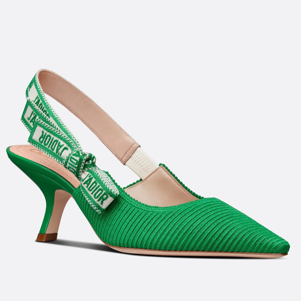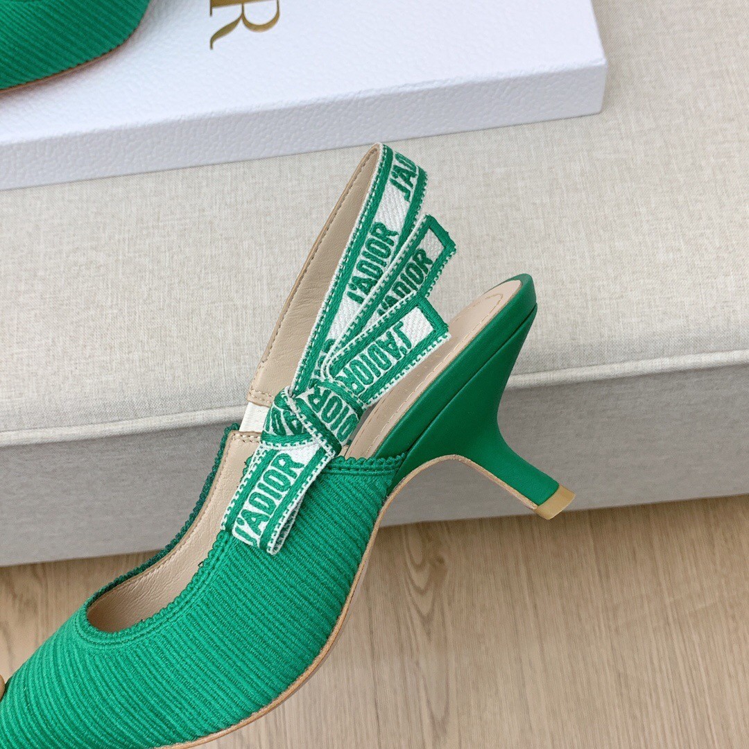 Dior J’Adior Slingback Pumps 65mm In Green Cotton Embroidery