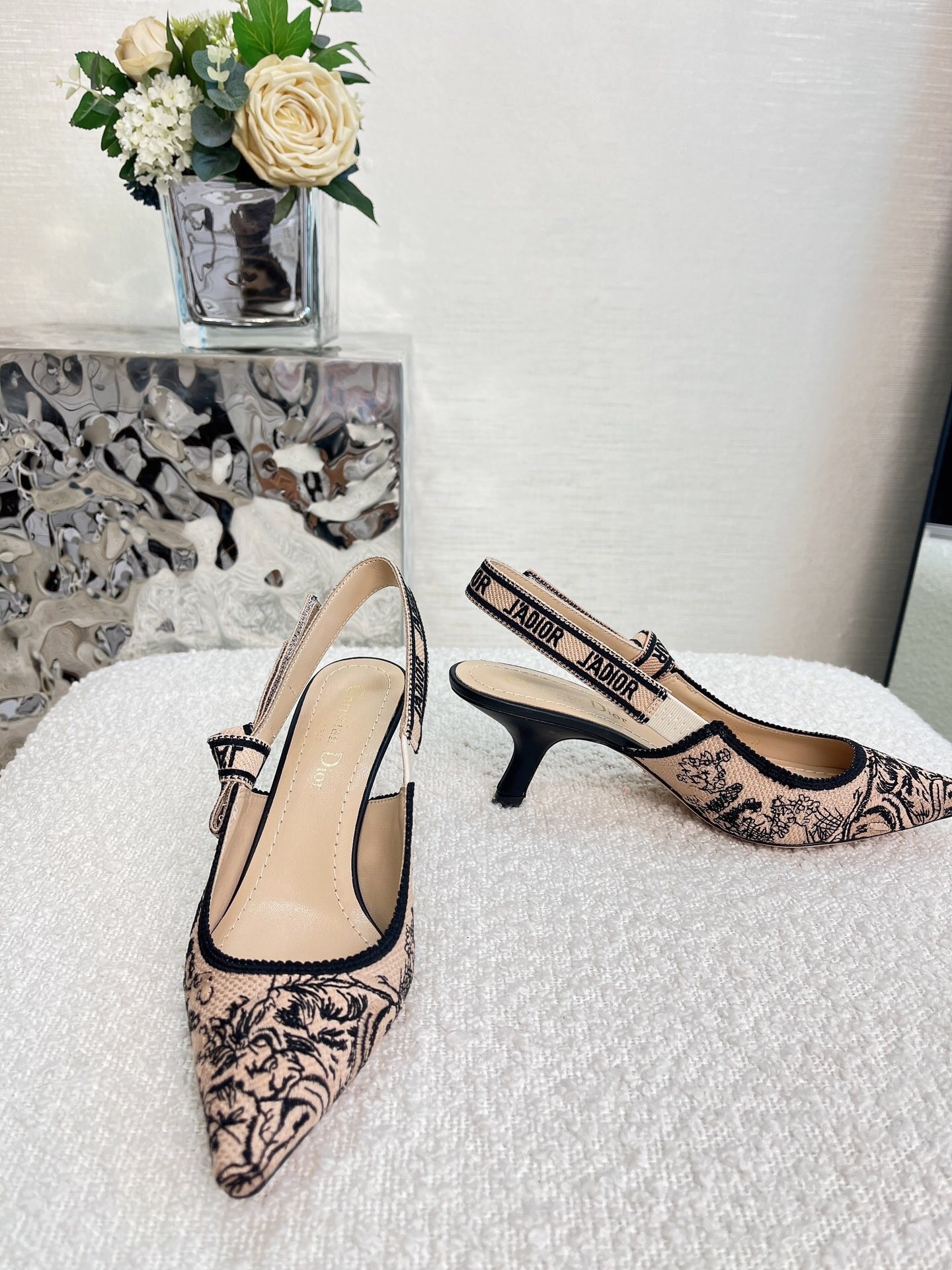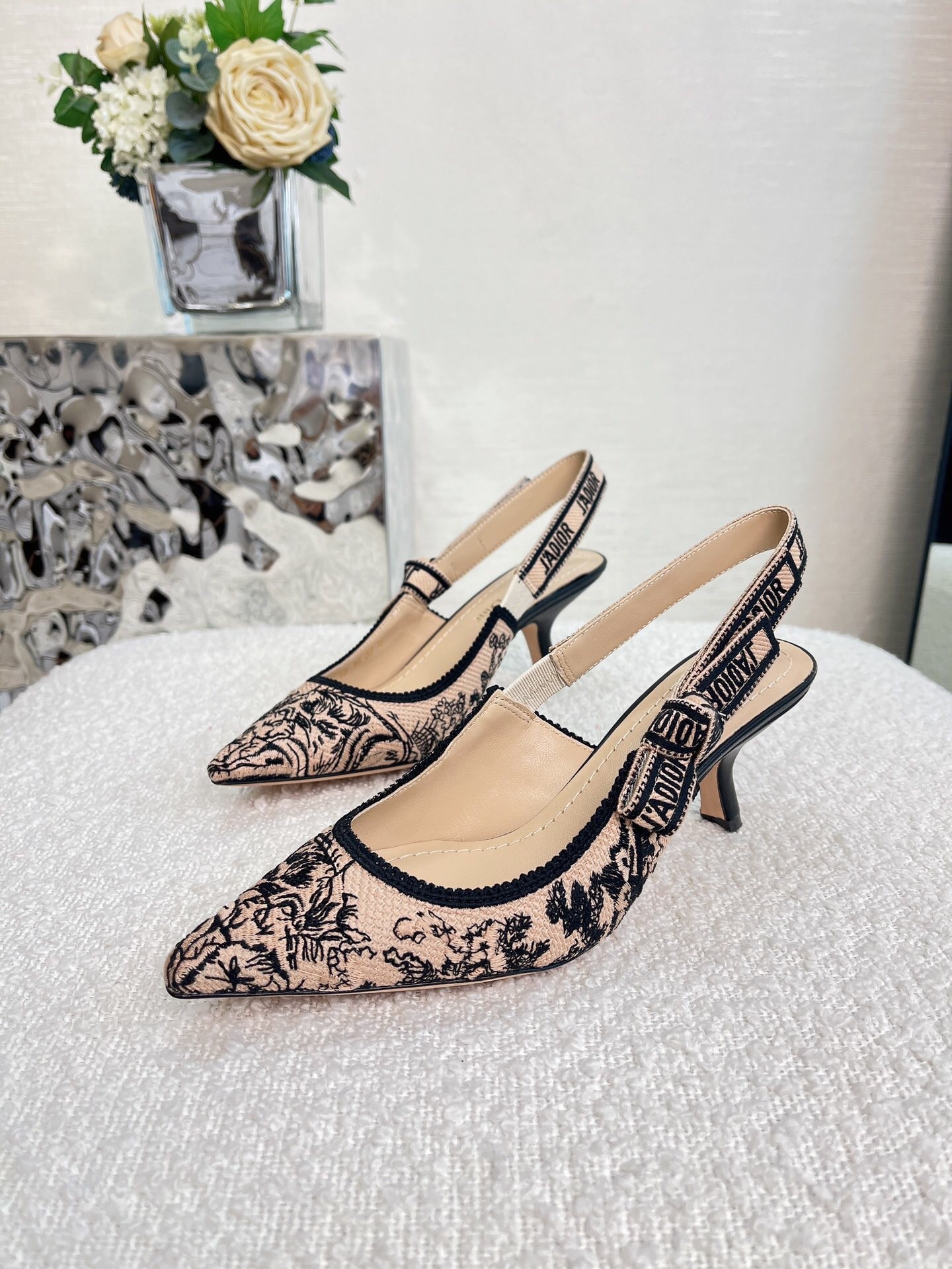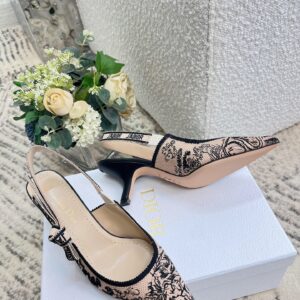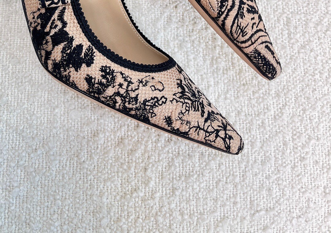 Dior J’Adior Slingback Pumps 65mm In Nude Jardin Botanique Embroidery Cotton