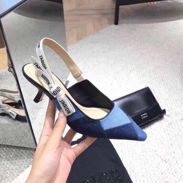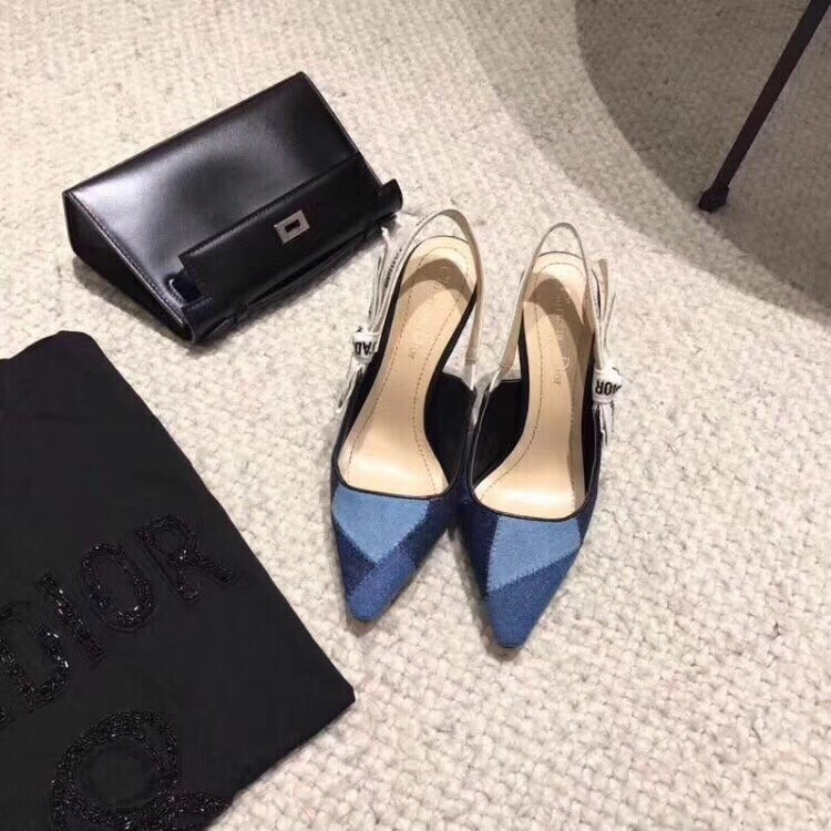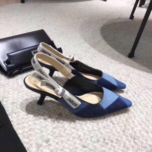 – Slingback pump in patchwork denim