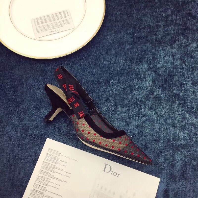 Dior J'Adior Slingback Pumps In Red Dotted Swiss