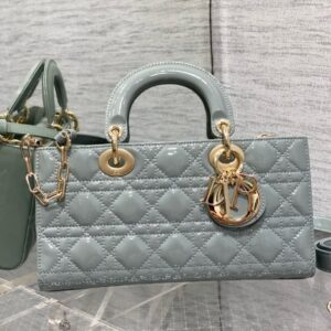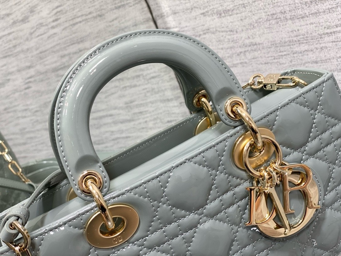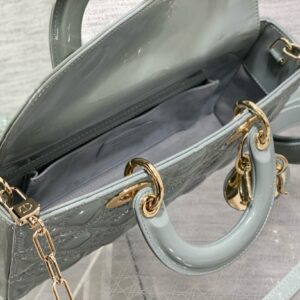 Dior Lady D-Joy Medium Bag in Grey Patent Cannage Calfskin
