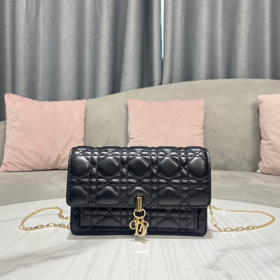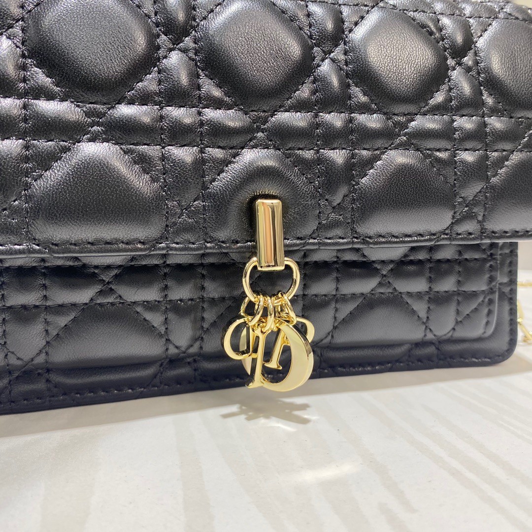 Dior Lady Dior Chain Pouch In Black Cannage Lambskin