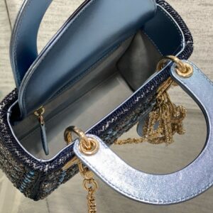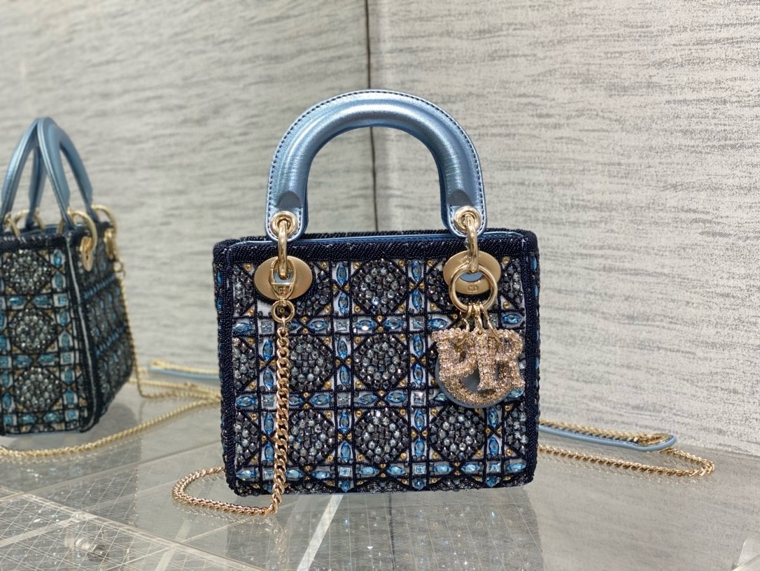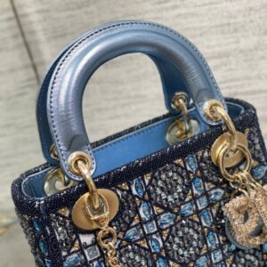 Dior Lady Dior Mini Chain Bag in Satin with Blue Bead Embroidery